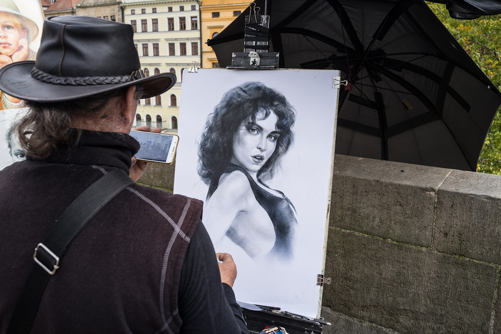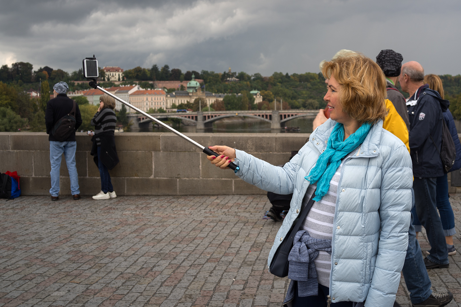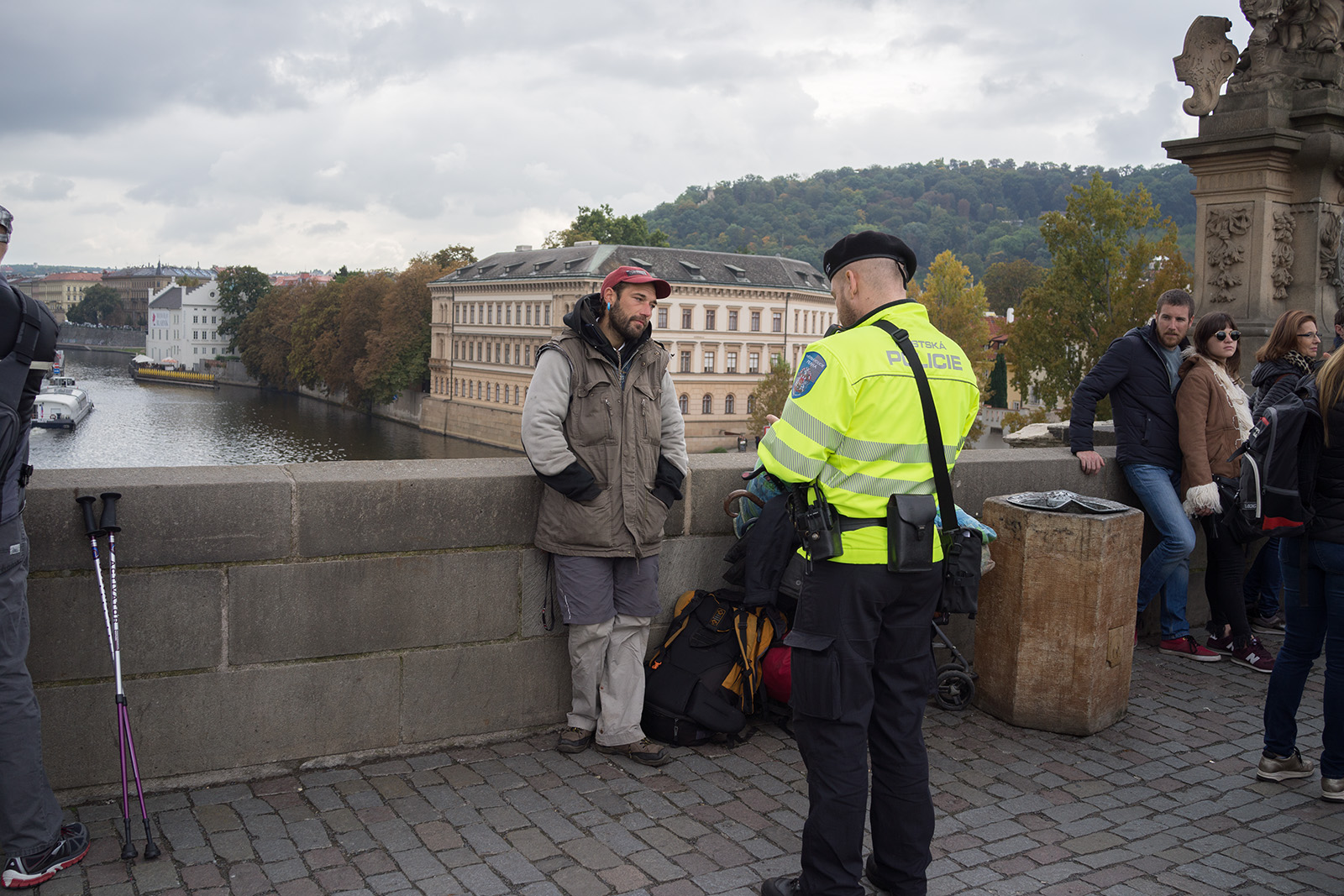 Na můj vkus trochu divnej to zvyk,posedávat na zábradlí - zdi, Karlova mostu a v jeho věku i dost divná a nebezpečná libůstka.Já na most raděj koukám odspodu od Vltavy.