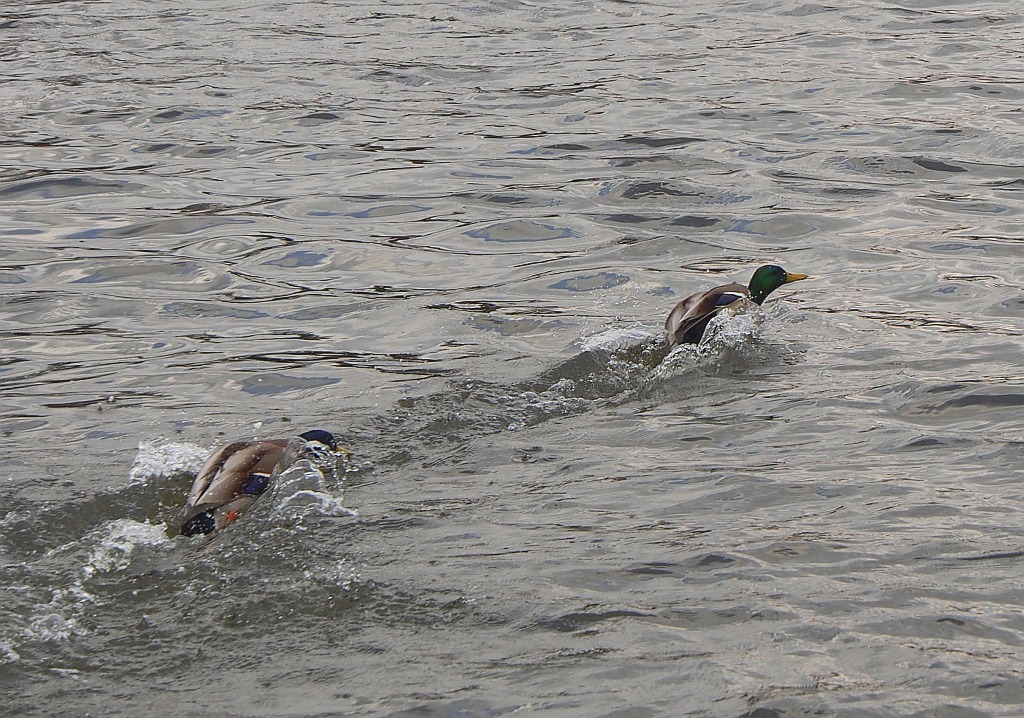 Vyšel jsem si na sněženky...a vůbec jsem nemusel troškařit Takhle to zase vypadá v ptačí říši když ....mu "plaval za jeho kachnou" , tady se nehodí říkat, že mu za ní chodil - - byli už dost daleko pro nasazený objektiv - tak jen výřez