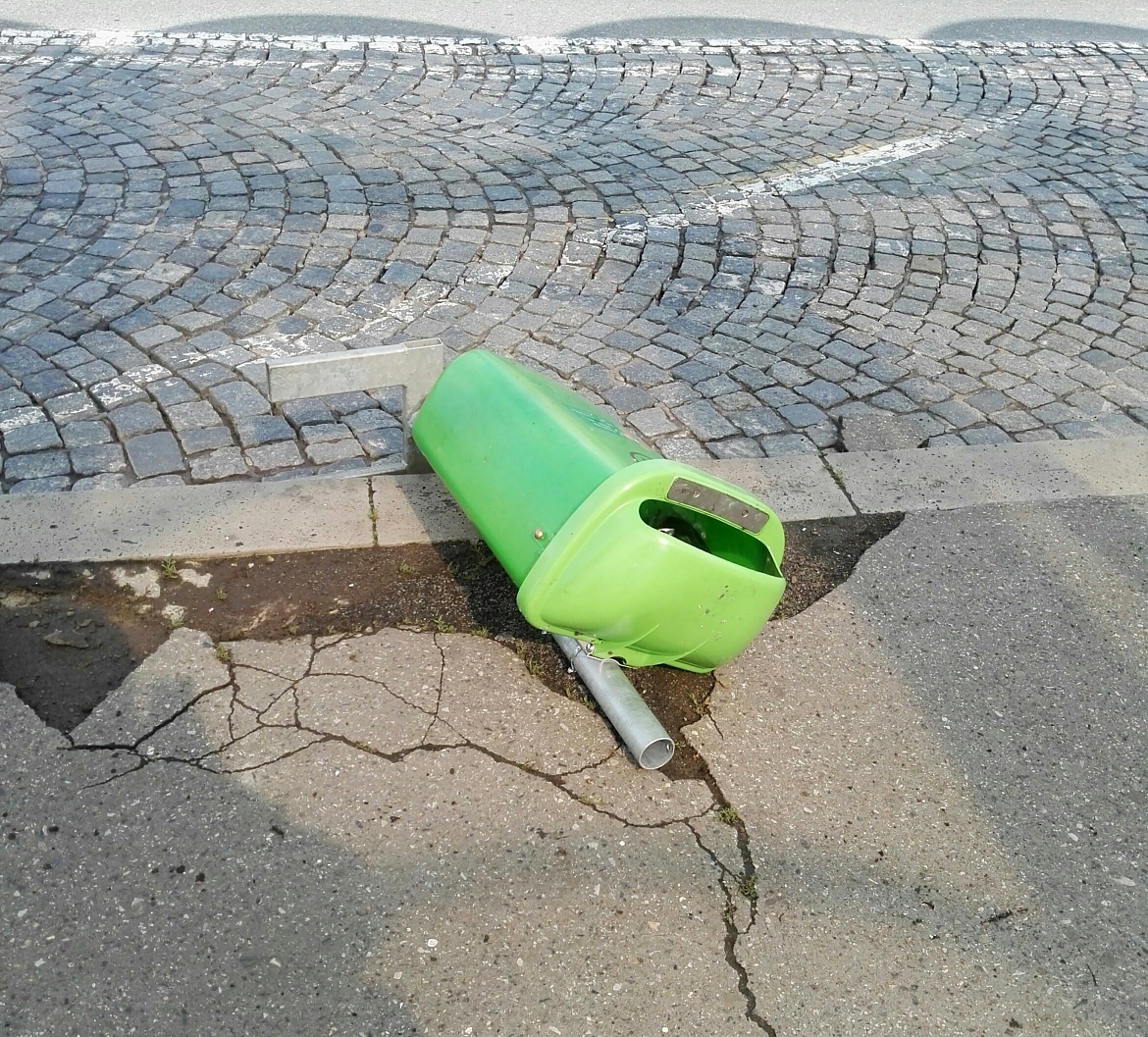 za autobusem, že mu ujel a vzal odpadkový koš se stojanem a hodil mu to pod zadní kola.