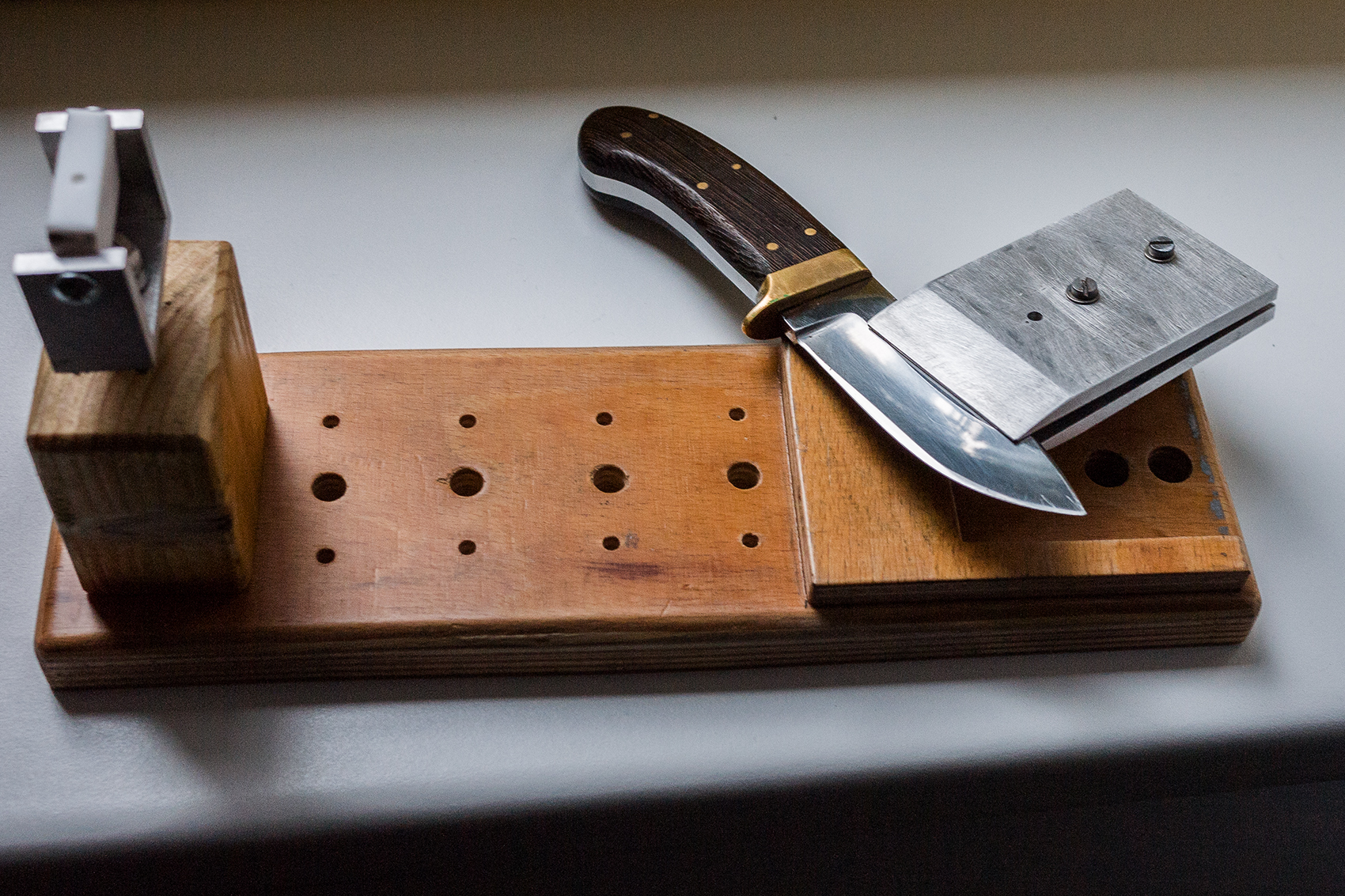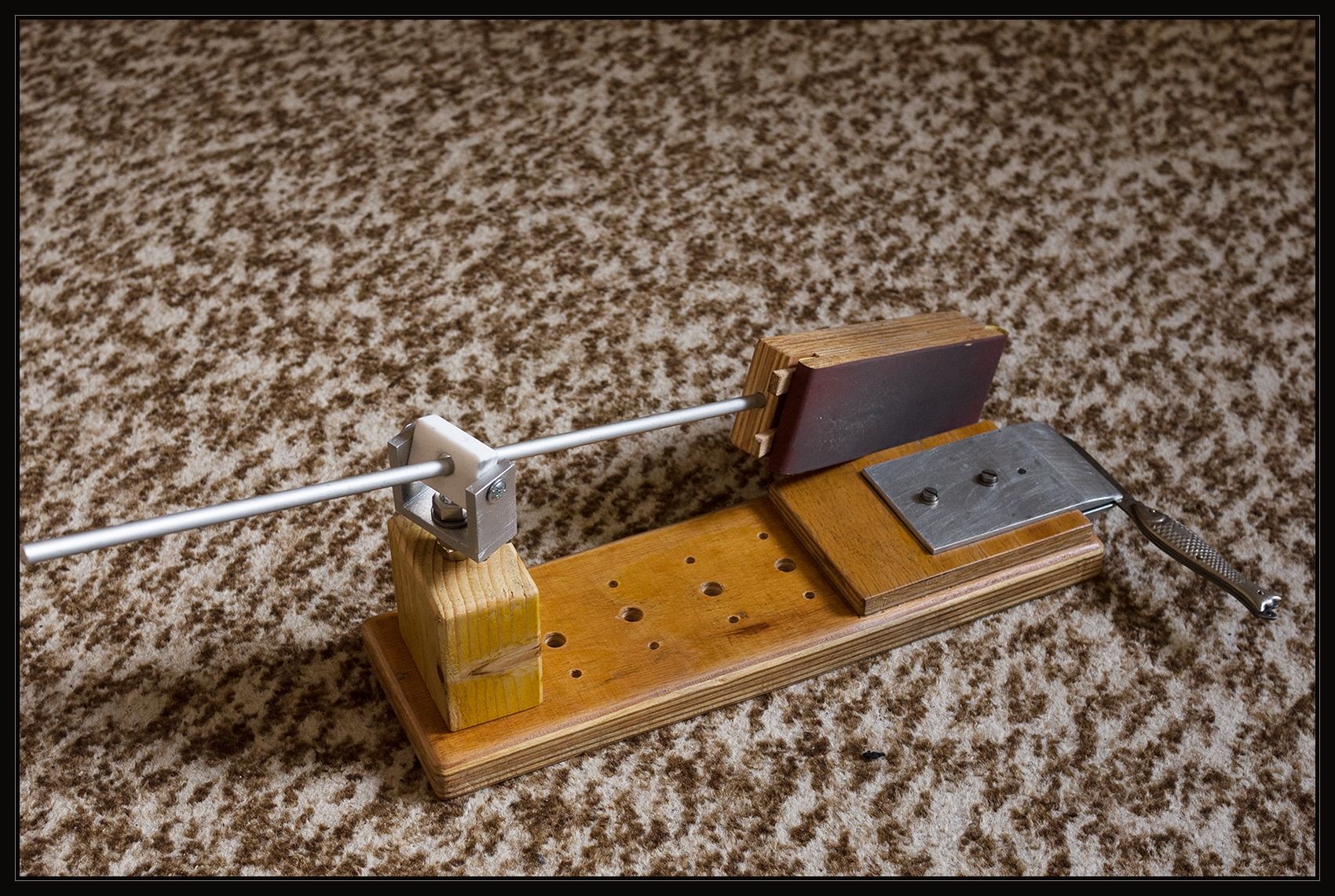 ( První zkouška broušení nože pomocí mého nového přípravku. )