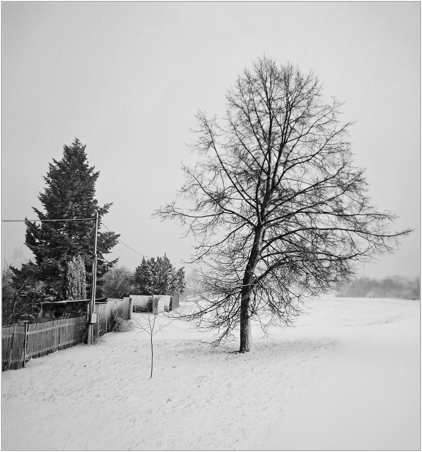 Stando , já jsem se 18-105 spokojený . Tak zase nějaké sněhové z mobilovky protaženo přez Silver Efex Pro 2 bez potahání šoupátek . ;)