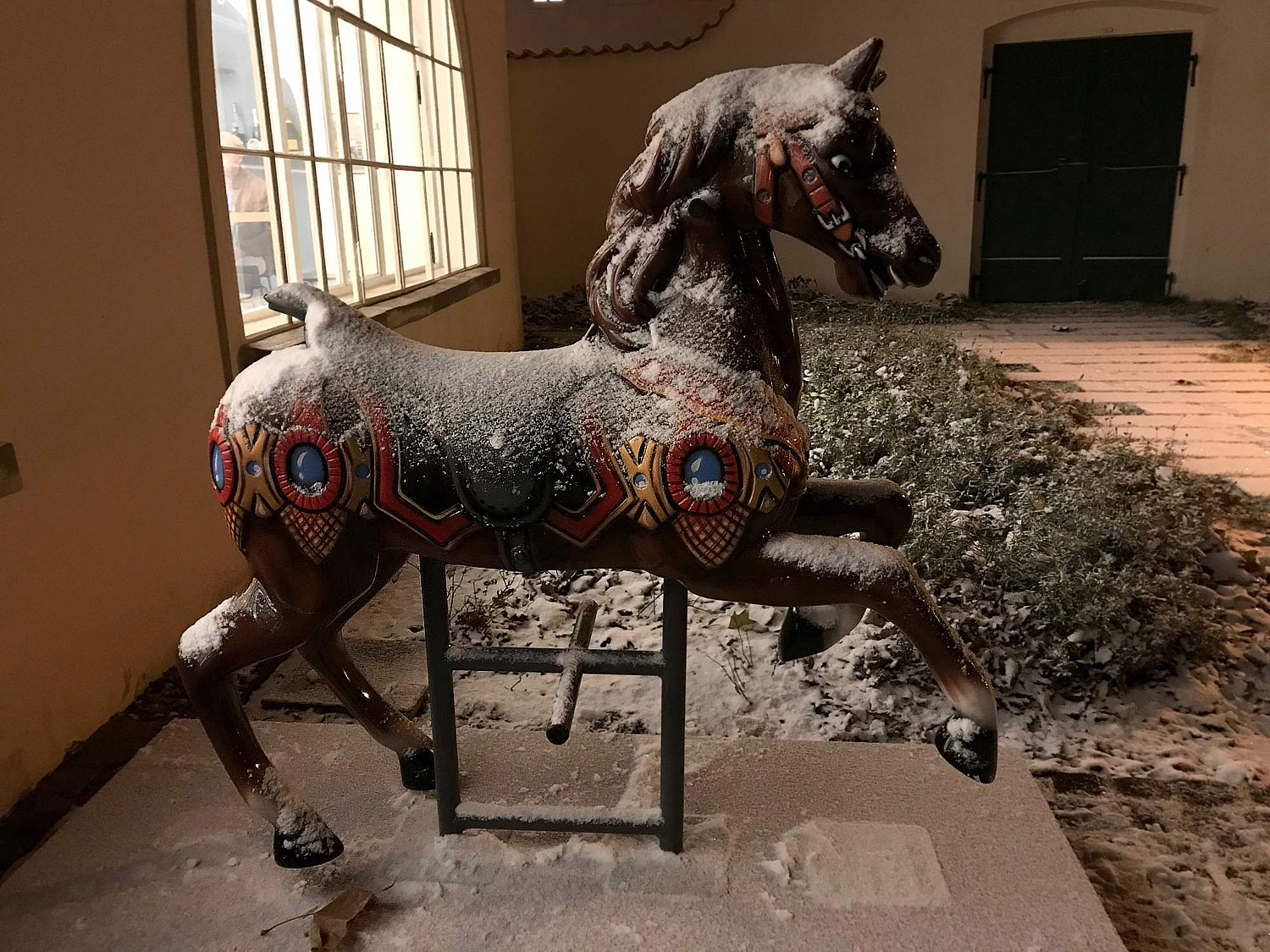 Koník,před restaurací a chudá chaloupka....dcera to cvakala z ruky Ajfounem a ty časy 1/4 - 1/5 s...ISO 100 - 80.