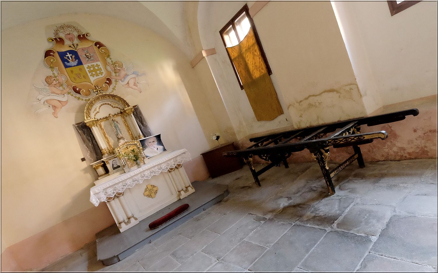 Ještě bizarní výloha Trattorie tre scalini.