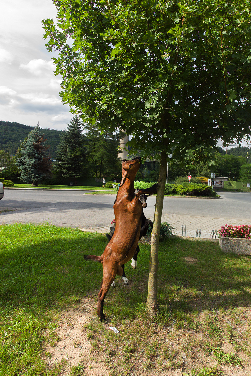 Kde se vzaly, tu se vzaly v naši obci dvě kozy, respektive kozlíci. Okusují stromky a chovají se, jako by jim zde vše patřilo. Jsem zvědavý, jak zde dlouho vydrží, než je někdo sežere! (y)