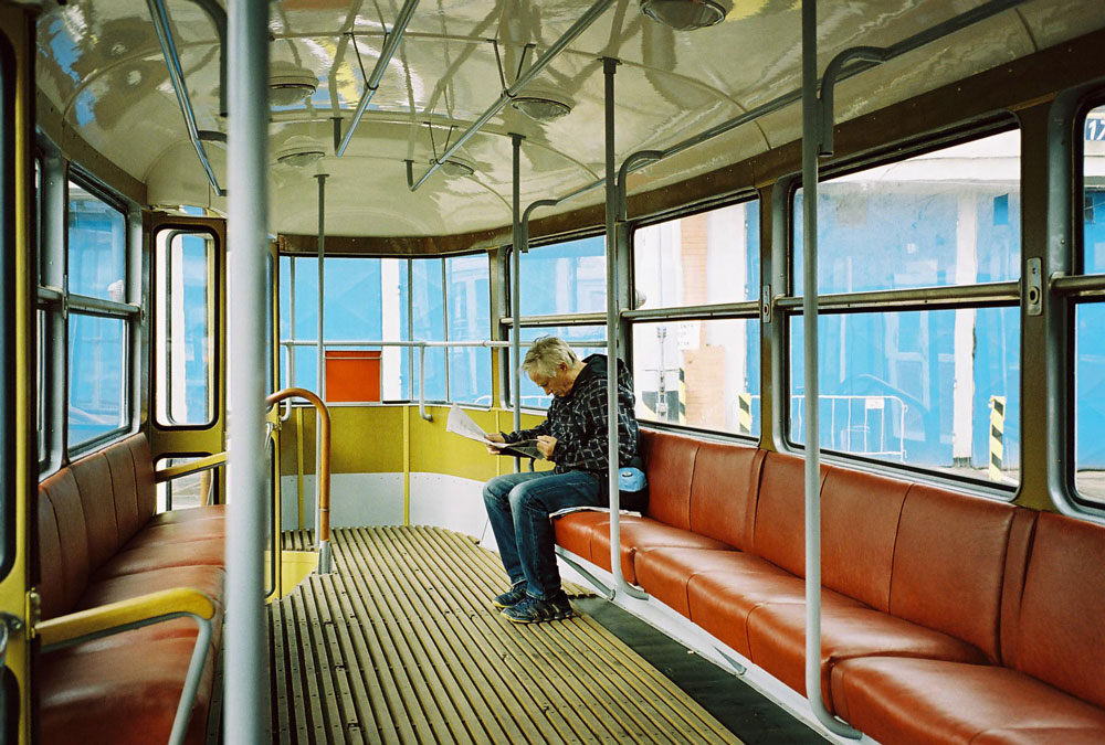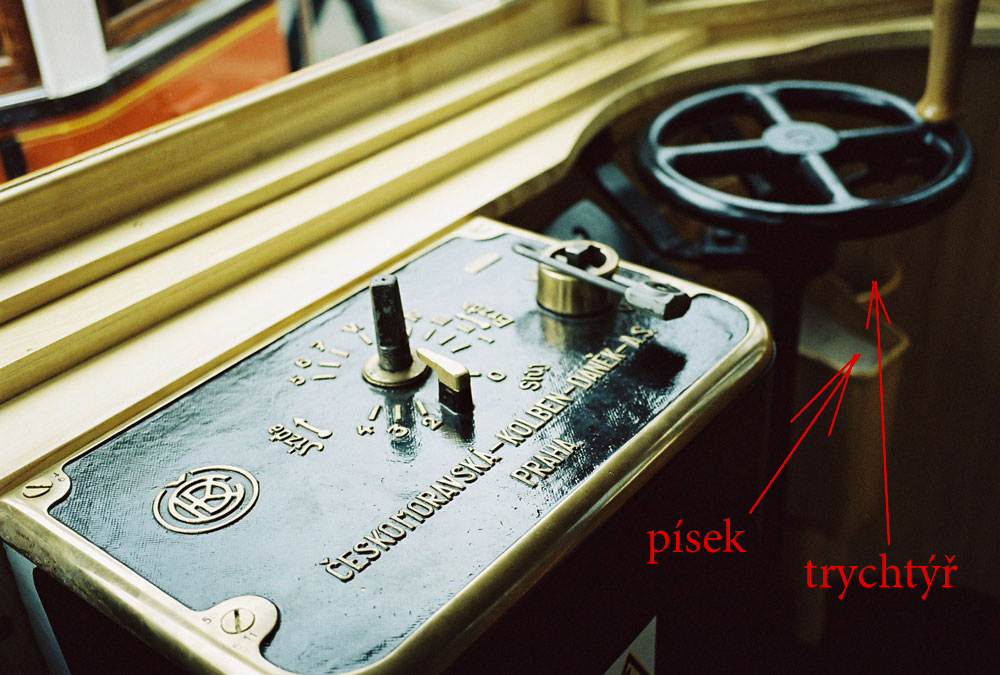 A jen nepatrné doplnění mých vzpomínek na staré tramvaje. Koženýho moc na nich nebylo, snad jenom řemínek na zvonění a poutka na držení cestujícich. A tu mou poznámku s jiným použitím trychtýře pro sypání písku také berte s rezervou. Určitě nad ním nevisel nápis: "Zde konejte svou potřebu". A řidič moc pohodlí také neměl. Celou dobu musel za tou klikou, kterou ustavičně pohyboval na obě strany stát. Teprve později vymyslel někdo pro ně nasazovací sedačku.