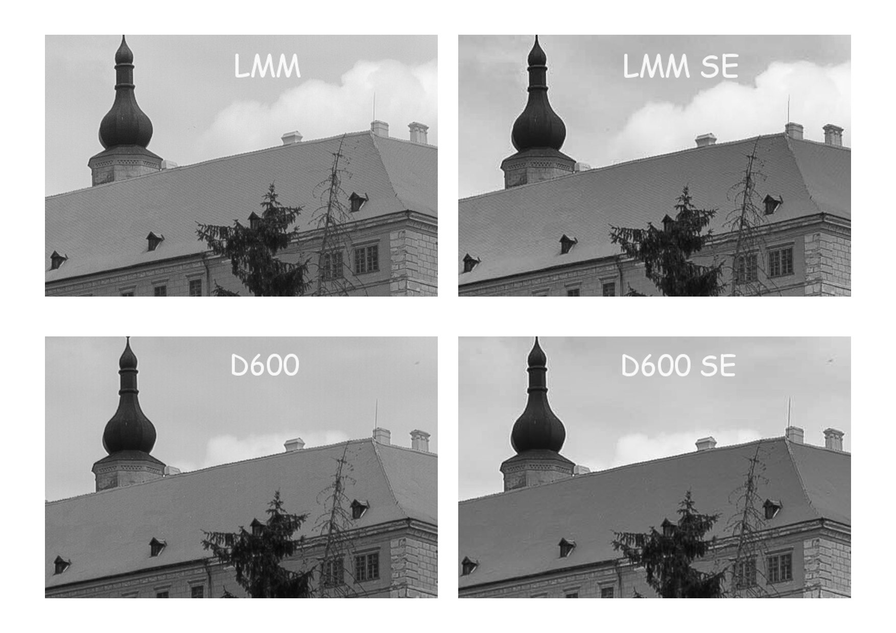 V kresbě musím konstatovat, že si oba vedou velmi dobře. Obrázky byly vyvolané v Lightroomu, u D600 metodou míchání kanálů převedené do BW, obojí následně prohnané stejně přes SE. Ten mrší kresbu docela výrazně...Objektivy 35/1,4 na clonu 8.... V podání jemných detailů se mi LMM jeví podrobnější....