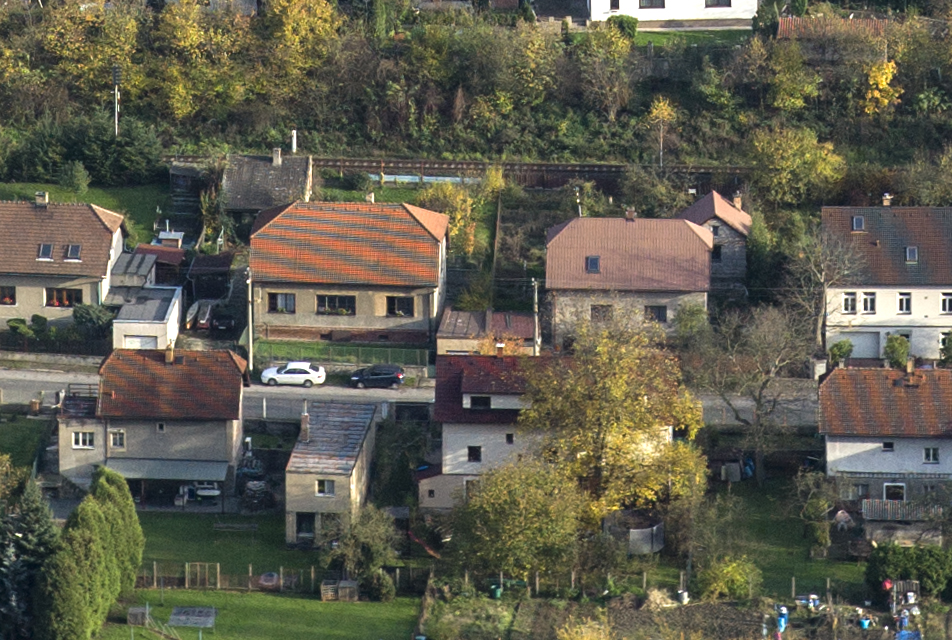 Dnes jsem si zkušebně nafotil panorama Vraného. Obyčejně tuto činnost provádím GF jedničkou se SUMMILUXEM 50 mm. Tentokrát jsem z pohodlnosti celé nafotil pomoci M9 a opět SUMMILUXU 50 mm. Panorama přikládám ve značně zmenšené verzi a zároveň přikládám jeden ze zdrojových s nímků, kde je na střechách pozorovatelné velice znatelné moare. Zřejmě absence AA filtru u M9 se na tomto úkazu dokáže při jistých okolnostech dost silně podepsat. Ovšem, takto výrazně se mně to ještě nikdy nestalo. Sice jsem si jenom hrál, ale pro vážnější výsledky by bylo celé nafocení k ničemu, to moare bych ze snímků zřejmě jen tak lehce neodstranil.