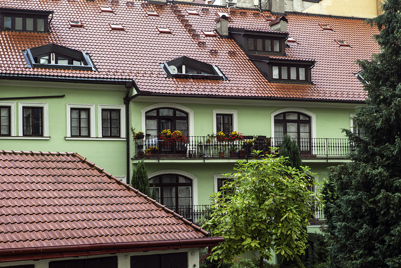 Jeden z Prahy. Moc už těchto pavlačových domů v Praze nezůstalo, ale hezké jsou.