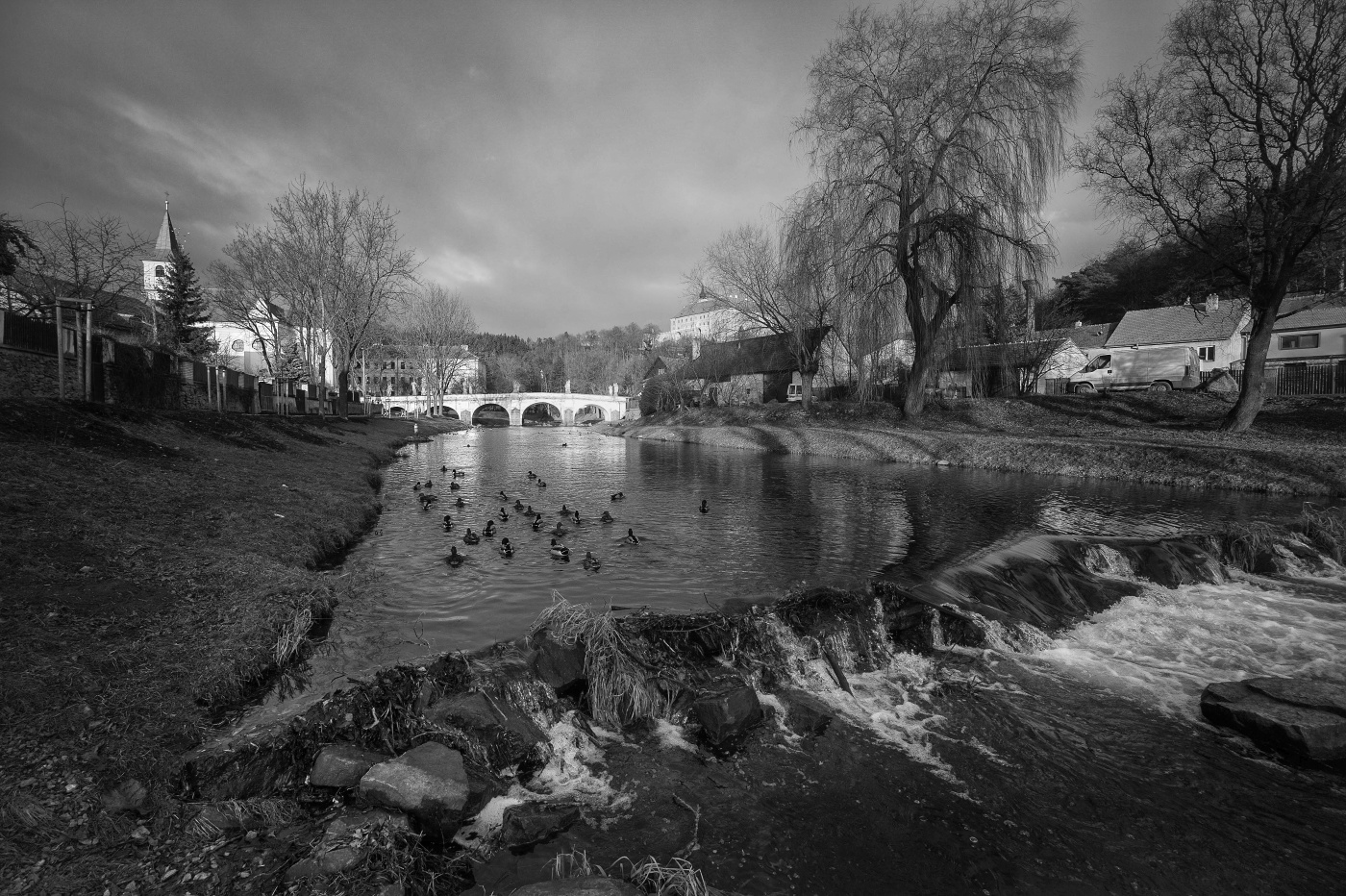 Počasí u nás na prd, tak jsem jen vyběhl s M9 a Voigtländerem 15 mm, před barák k vodě.