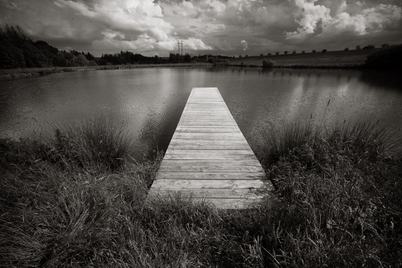 Včera jsem se k tomu rybníku vrátil. Chtěl jsem nafotit to molo s mokrejma stopama bosých noh. Ale nešlo to. Musel bych mít sádlo, nebo barvu. Každý druhý šlápnutí už přestávalo být vidět... Ale voda už je teplá.