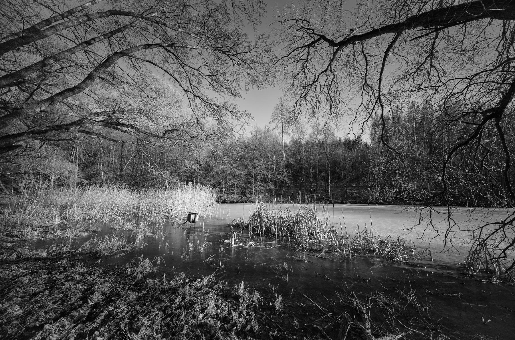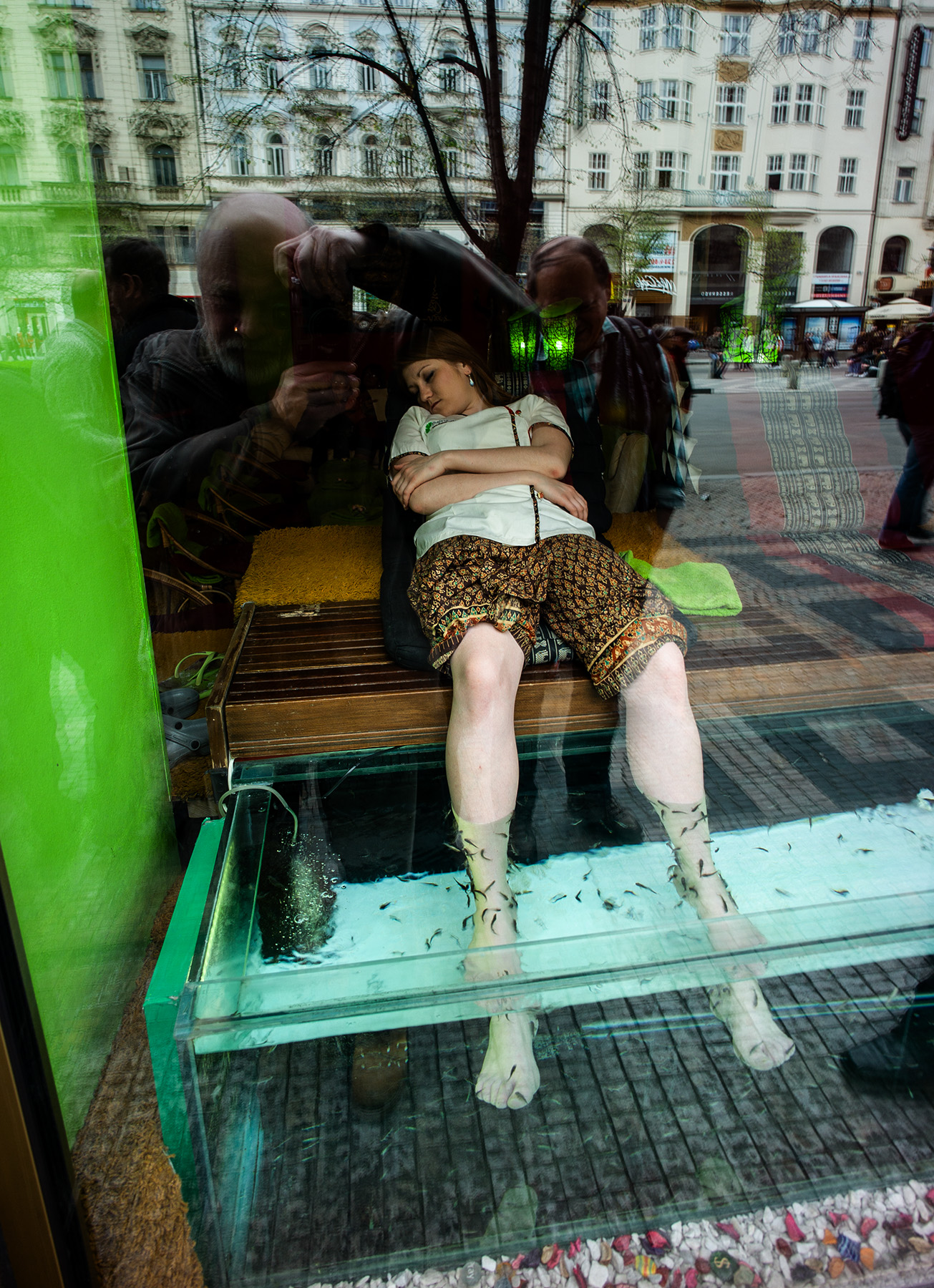 Fotografováno na černobílý film, Leica M6, tři expozice přes R, G a B fóliový filtr.