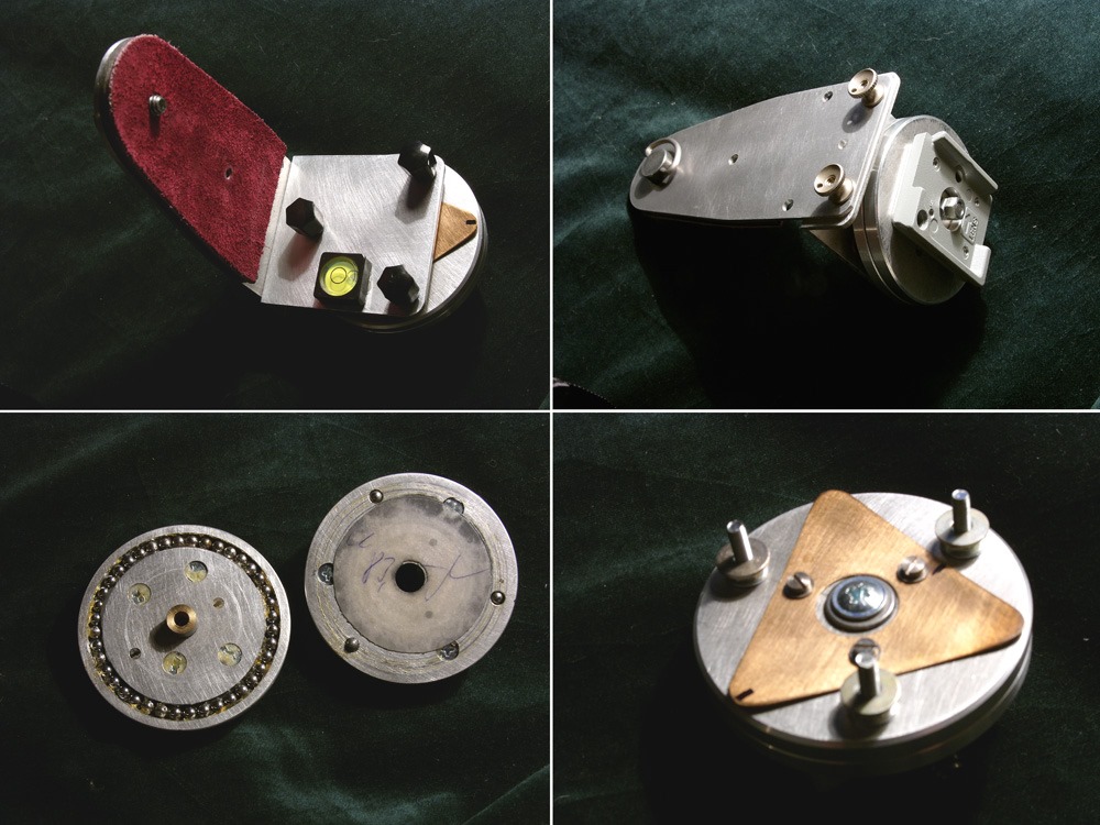 Je to tento přípravek na pano, mírně upravený kvůli nodálnímu bodu aparátu s objektivem. Jako aretaci v horizontální poloze mám v drážce vlepené ložiskové kuličky, mezi které v protikuse zapadají do jejich mezer tři kuličky tlačené planžetou. Vyráběl jsem několik různých variant těchto přípravků a jedině tento způsob mi zaručuje přesné dělení a hlavně rychlé přetáčení. Dělení je po 9 stupních. A na větší úhel mi stačí jen odpočítávat skoky mezi kuličkami. Na výšku mám jen dvě rysky na kulise. Více, než třířadé panorama jsem nikdy nedělal. To přetáčení s tímto přípravkem je velice rychlé, spíš nestíhá vyrovnávací paměť v tomto malém foťáku.