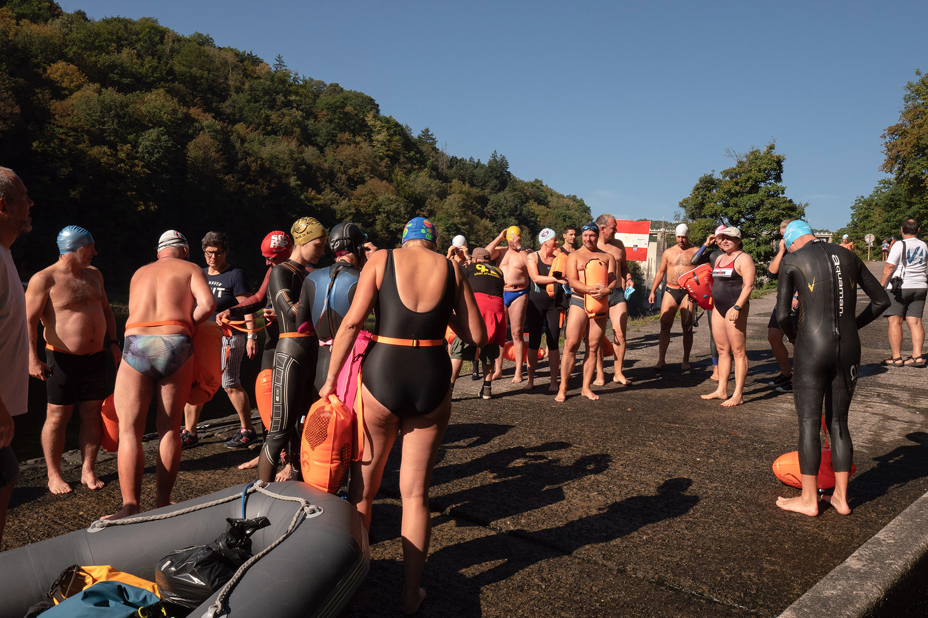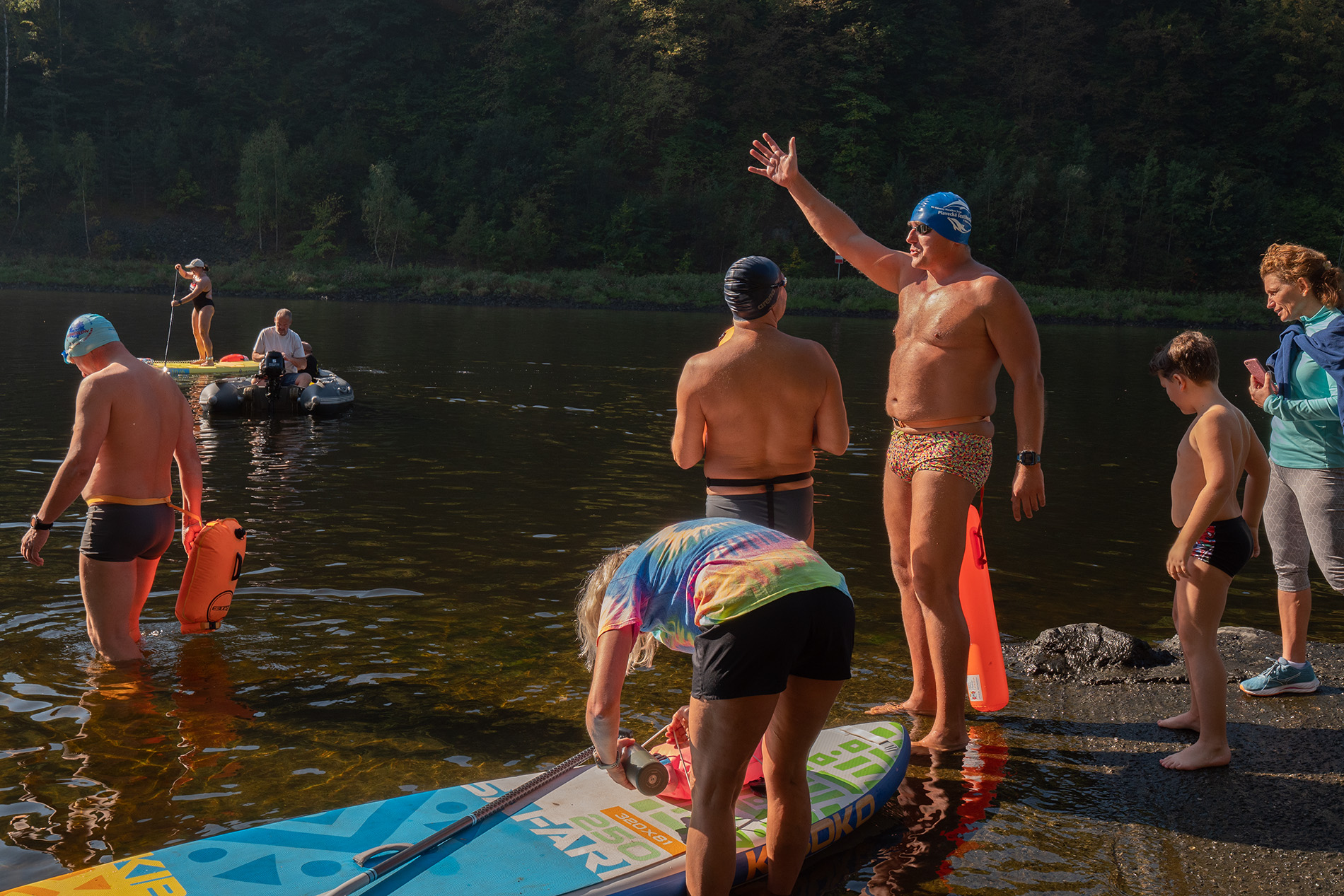 A ještě jeden, hemžení plavců před plavbou v Třebenicích pod elektrárnou, každý si drží tu svou nezbytnou bójku, počasí ale přálo. :-)