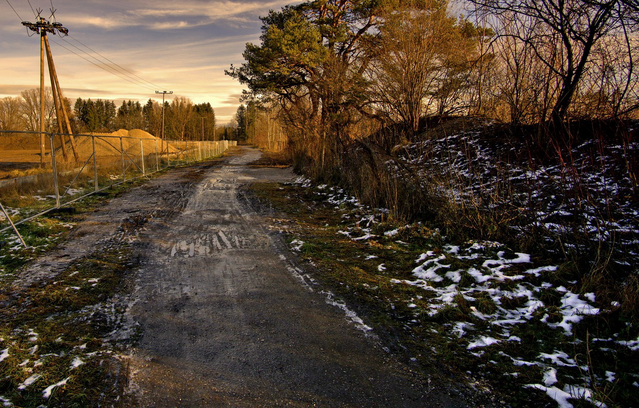 Jojo, připojuji se (n) Horší atmosféra je z rozblátěné cesty a za pozinkovaným plotem stavební materiál i "krásné" el. vedení u následující fotky :( Navíc s horizontem uprostřed a perspektivou konce cesty taky skoro uprostřed...