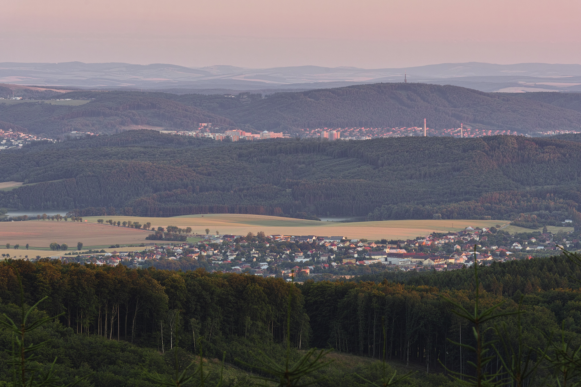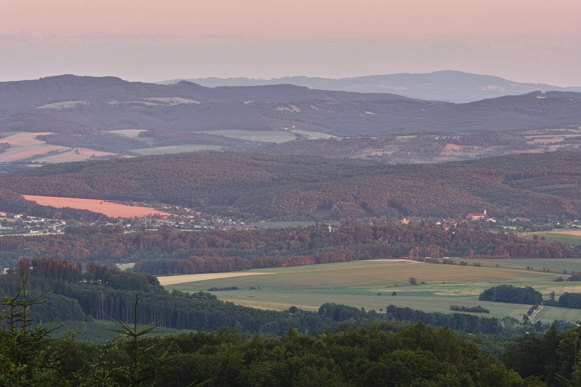 Tady do toho sluníčka před západem furt něco leze, takže na takovou parádní "baterku", jak má už druhý den Jarda, jsem dnes opět mohl zapomenout. Tak jenom taková decentní růžová z hřebene Ondřejovska.