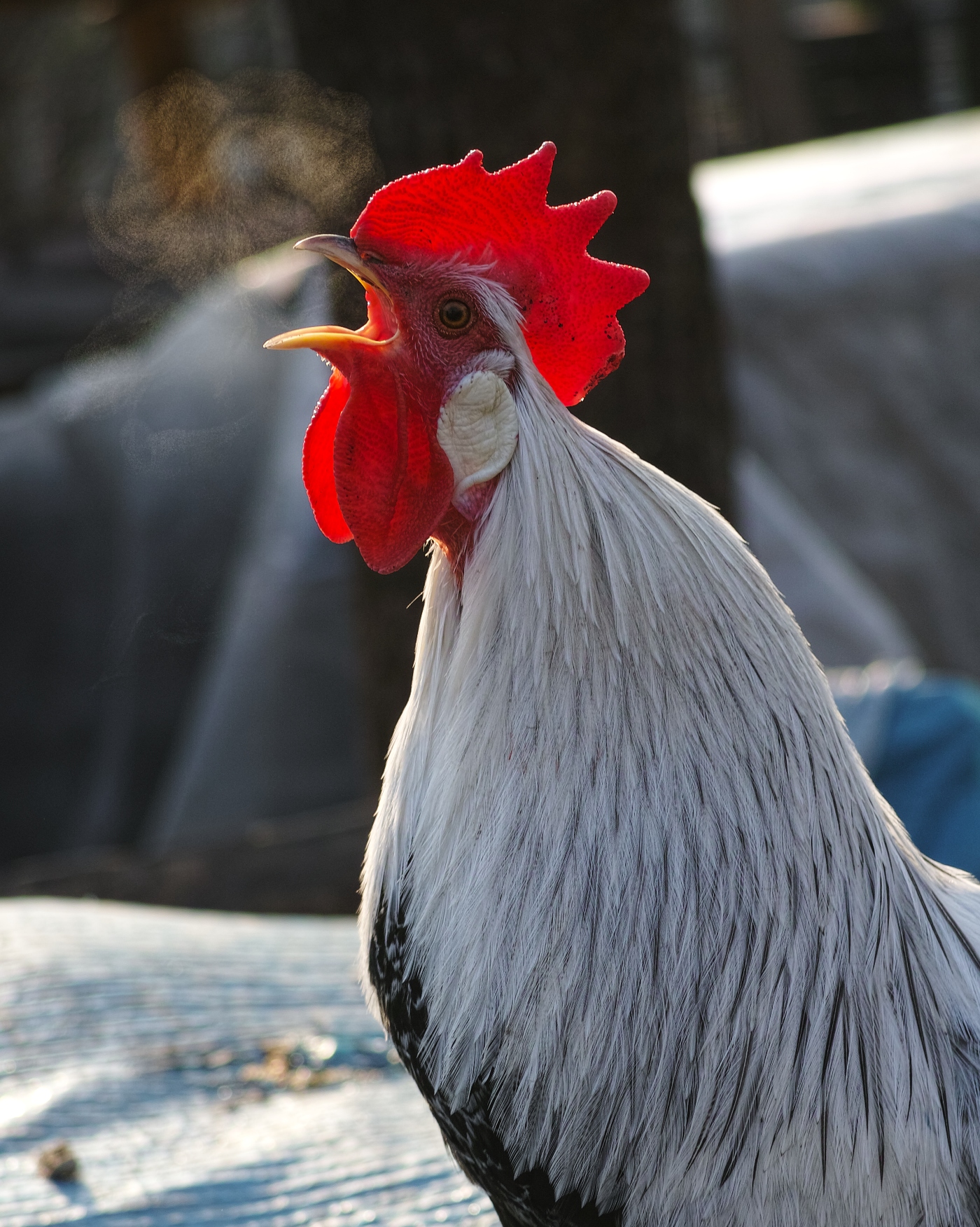 ešte k tomu kohútovi. Trocha som si to zväčšil a čo nevidím. Z úst mu vychádza dym. Nešlukoval on tesne pred fotením :D ???