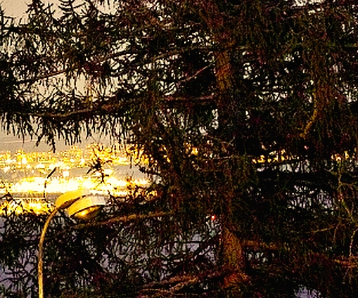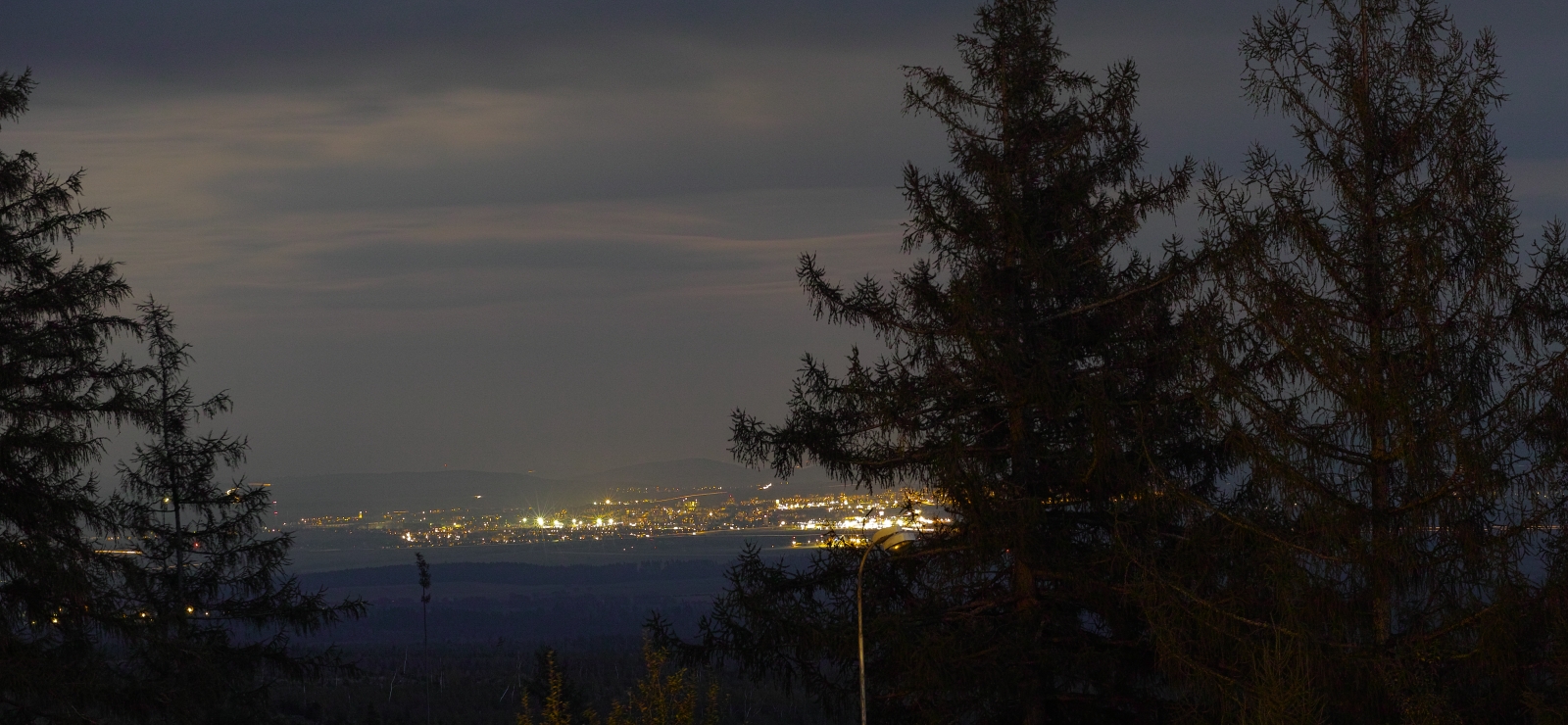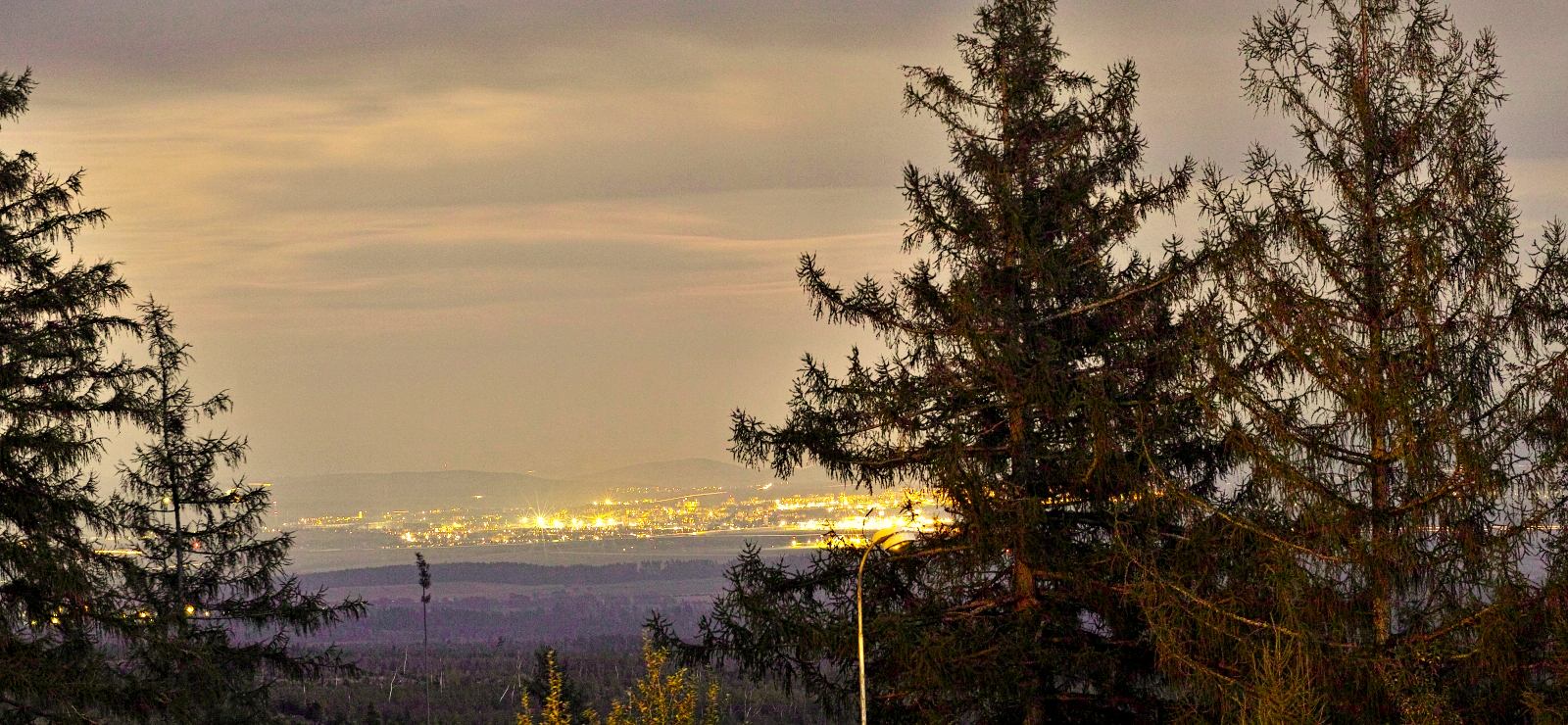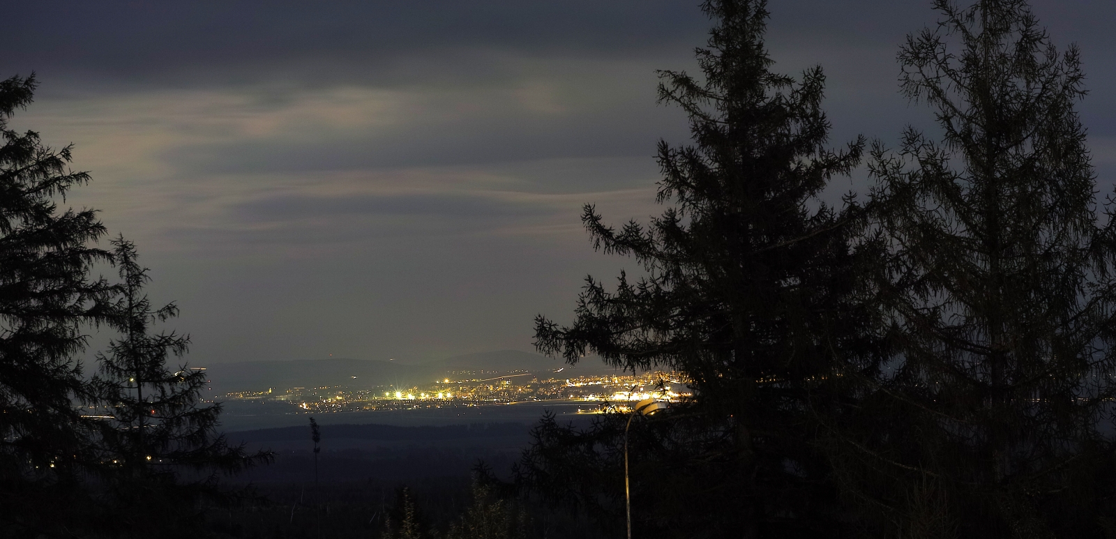To neni vubec focene k veceru, ale brzo rano pri vychodu slunce! Ten dobrak vstava totiz se slepicemi nekdy uz o ctvrte, pate hodine, takze to mohl klidne cvaknout, protoze se nudil, kdyz ten nebo ti ostatni kumpani jeste spali....Proto je ten Poprad plne osvetleny; to nezacali rozsvicet svetla ve meste, to ty svetla uz davno svitily! A pak, kdyby byla tma jak Laco tvrdi, tak by ty kopce nahore v dalce za mestem nebyly vubec videt, protoze tam zadne svetlo neni a mesic, protoze je zatazeno, to taky neosvecoval.... keca a keca.... si na vestu.....
