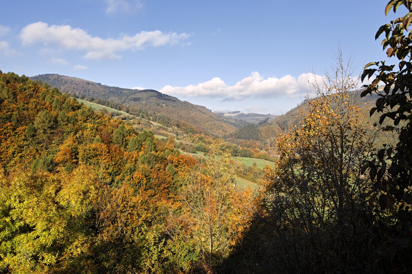 Jarousi, abych rekl pravdu, tak se mi nejvic libi ta prvni fotka. S tim mesteckem mi pripada toto svetlo, nebo lepe receno tato barevnost na fotky krajiny se zastavbou nejlepsi. Horsi to je uz s temi tremi ostatnimi. Barevnost maji prepychovou, ale ty Vizovice (nebo vubec v takovemto podani i jina mestecka ci vesnice) uz k te barevnosti fotky tak nejak nesedi. Kdyby to byla krajina bez vesnice nebo mestecka, tak by ta krajina v techto barvach a samoztejme s nejakym popredim, ne s loukou a pod. byla suprova! A mohl bys do kompozice zahrnout i nejake vhodne popredi (jako ty stromy na posledni fotce, ale lepe a dominantneji, v lepsim kontrastnim svetle), ktere ted moc fotit k te zastavbe dole nemuzes, protoze by pak zase nebyly videt ty Vizovice. Musis se holt rozhodnout co tedy radeji fotit; vesnice a pod. nebo pravou prirodu, krajinu v plne parade. Ted, kdy jsou ty barevne lesy nejkrasnejsi tu vsechnu nadheru nicis upravou barvy domku, "aby to pasovalo".