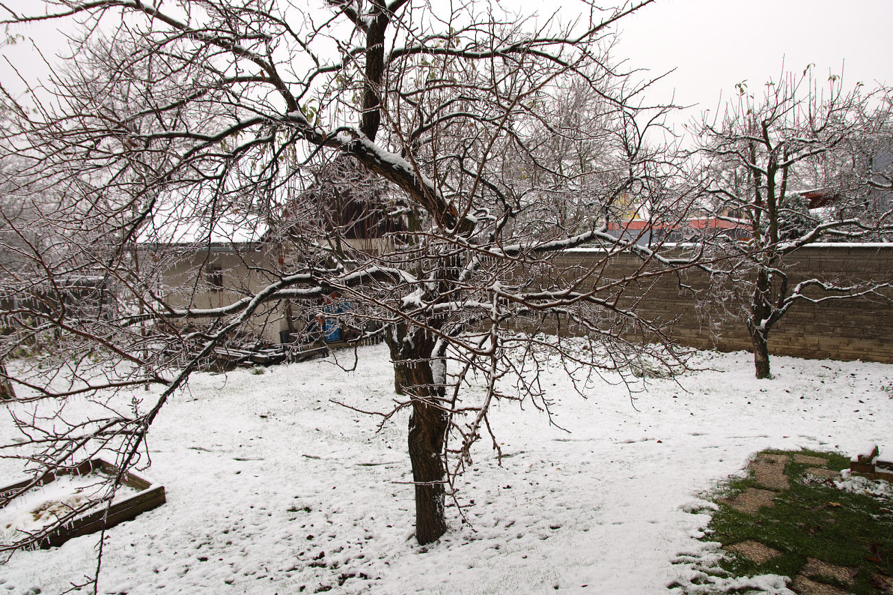 Trochu jsem si zase hrál. Pár cvaků ze zahrady a z balkónu, vyvážení bílé je ruční podle sněhu ;). U těch platidel jsem zapomněl vypnout stabilizátor (stativ), nevím, jestli to nějak ovlivnilo ostrost. Každopádně hloubku ostrosti jsem ani s clonou 9 nevychytal (stačila by ta bankovka), na tohle zaostřování už se seťákem bez živého náhledu nemám. Chtělo by to hledáček z FF Nikonu... Ostatní fotky jsou z ruky, vše bez úprav, jenom vyvolané RAWy. Sníh je přeexponovaný na +2 EV, přepaly na něm nejsou.