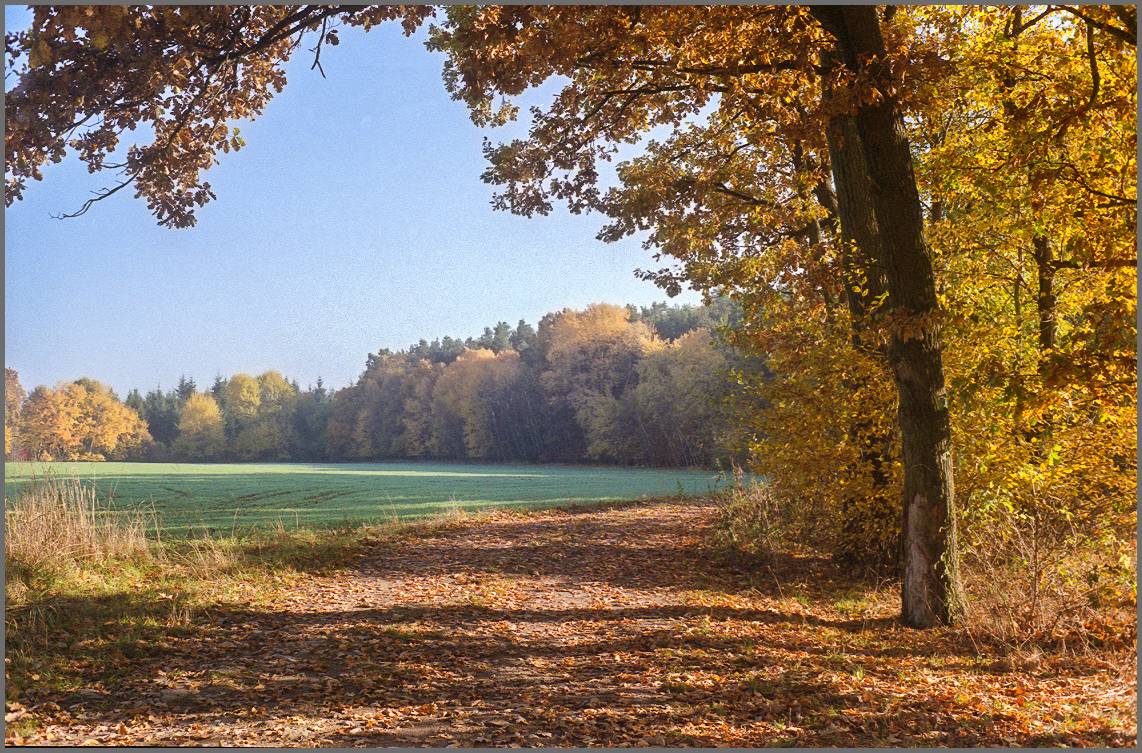 Téměř přesně. Stezka mezi Žlutavou a Otrokovicemi, 100m před klesáním do Otrokovic.