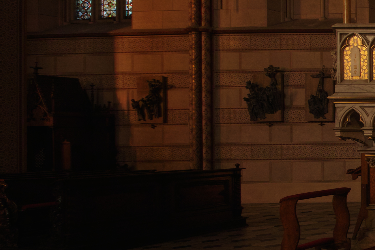 Fotky z toho kostela jsou podexponovány o dva stupně (ty podexponované o 3 EV jsem ještě nedával), míru podexpozice těch nejtmavších míst si ani netroufám odhadovat. Přesto ani v těch tmavých místech žádné barevné příšernosti nevidím. Že do nich po zesvětlení dostanu ještě trochu původních barev je skoro zázrak, ale prostě tam jsou. Přijde mi to mnohem přijatelnější a přirozenější, než tma bez viditelné kresby a alespoň náznaku barvy.