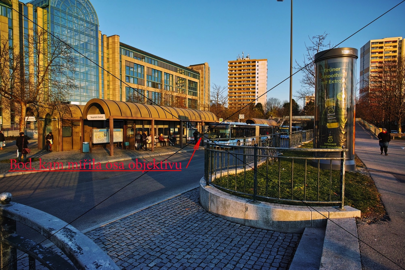 Podle obrázku ( jestli jsi ho ovšem neořezával ) je jasné, kam směřovala při snímání snímku osa Tvého objektivu. Jelikož jsi stál na nějaké mírně vyvýšené ploše vzhledem k střednímu bodu snímku, tak je jasné že jsi s fotoaparátem mířil mírně dolu a proto i ta mírná rozbíhavost svislic budov. U druhého snímku ( SDIM0463bd.jpg (966.54 KiB) ) je tento úkaz ještě markantnější.