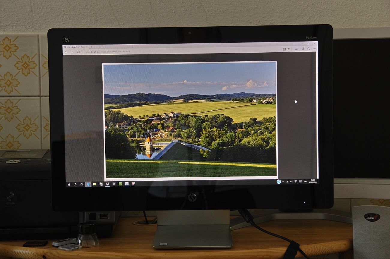 Koupili jsme bráchovi k padesátinám počítač (vše v jednom) a takhle na něm po kalibraci vypadá tato fotka. Fotka s monitorem/počítačem je bez úprav, lesklý displej dělá odlesky. Ale jemu to určitě vadit nebude, je to docela solidní IPS.