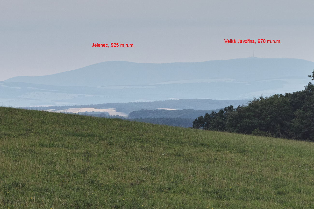 Jarouš píše:Jardo, ten Tvůj směr druhé fotky v mapce je naprosto správný. A právě proto je to Jelenec. Když si tu mapu ještě o krok zvětšíš, máš ho přesně tam. Velká Javořina má mnohem větší vysílač a kus relativně rovného hřebene. Našel bys ji ještě víc vpravo v nepříjemném protisvětle. Dobrou fotku nemám, ale snad postačí i výřez. Foceno asi 5 km jižně od Zlína, úhel pohledu je téměř stejný.