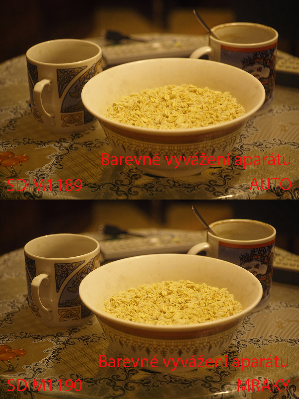 Kdybys byl nafotil takto snímky v interieru, budou co do barevného vyvážení naprosto stejné!