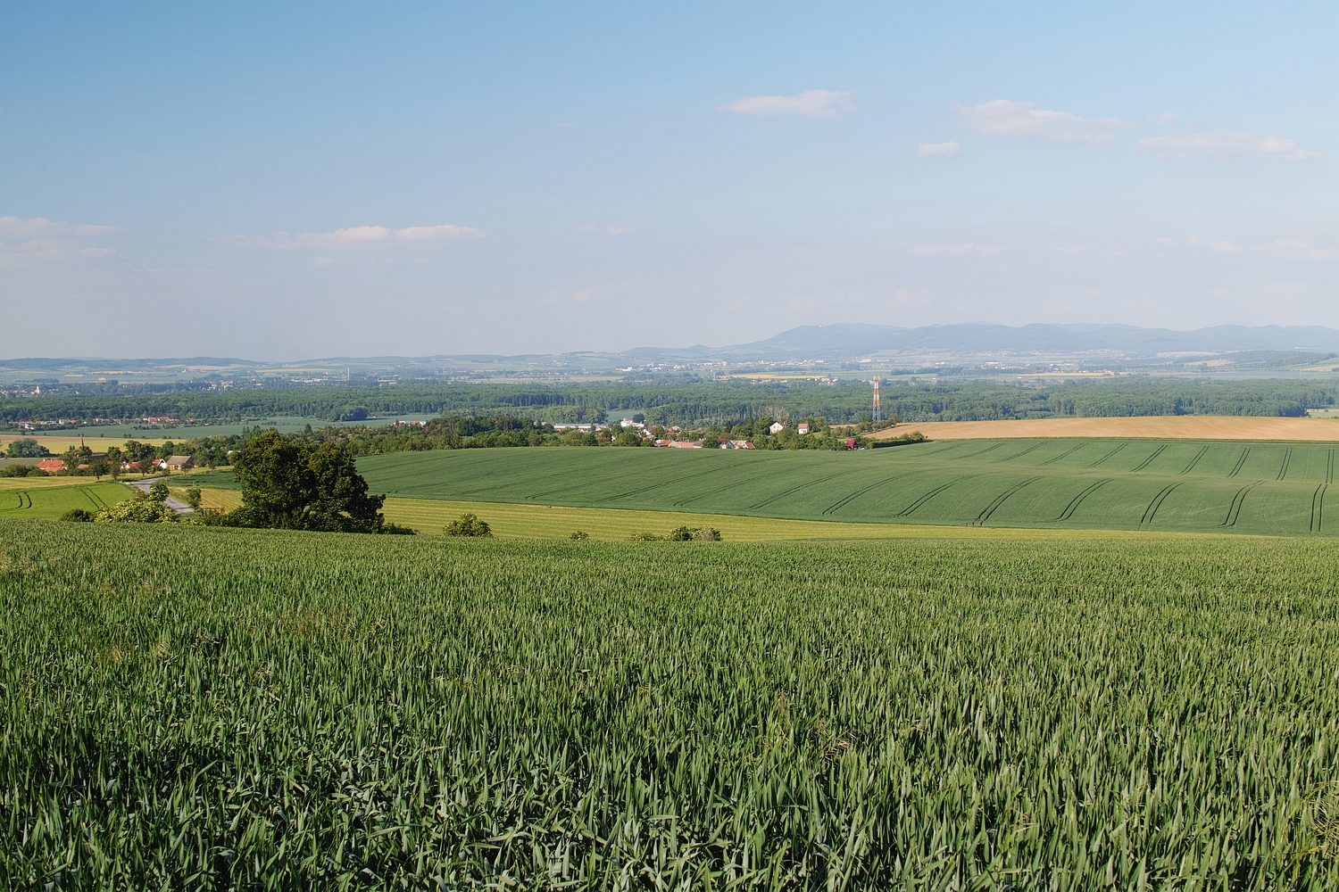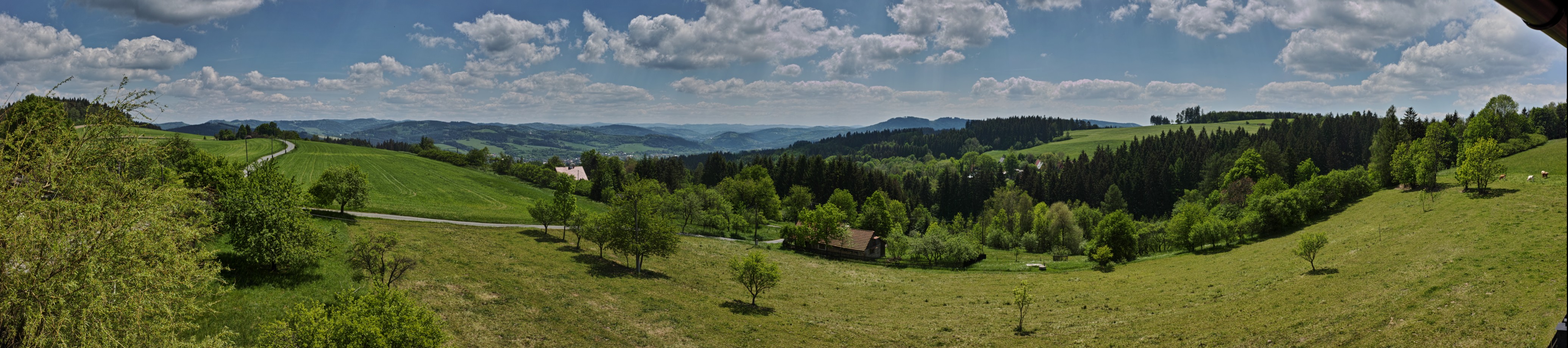 jsou "Prženské Paseky" foceno z rozhledny u Holáňů, dole v údolí je Jablůnka.