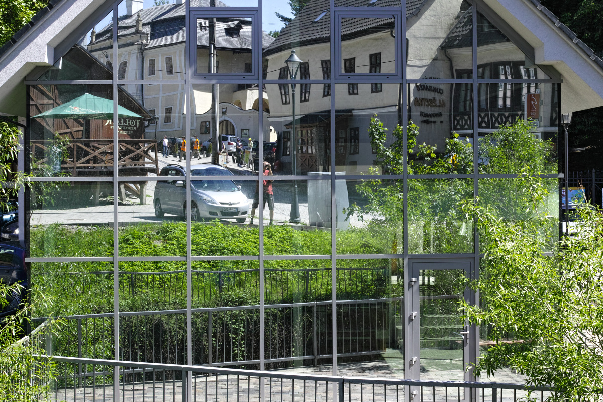 Mé nohy v odrazu ve skle, nekřiví objektiv, ale právě to sklo. aspoň doufám. ;) M