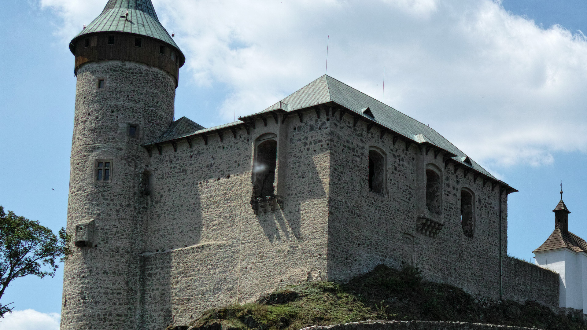 Jarouš, zkusil jsem toto vysvětlit mnoha způsovy avšak žádný není relevantní, problém je hlavně v samotném aparátu který je opravdu na vynikající úrovni a při cloně 5,6 ostrý od 3m do nekonečna, tudíž cokoliv jako chmíří zakrývající plně kresbu v pozadí apřesto mimo ohnisko je vylouženo, ještě k tomu pokud se jedná pouze o jeden zjev v celém snímku, ujišťuju se tím, že by se toto vyskytovalo i na jiných snímcích a pak na kopci kolem hradu nic takového nelítalo, jen hmyz a kavky, na celé fotce nic takového stejného nikde prostě není, jsou tam od hmizáčků jen šedivé tečky... problém je že je Merrill ostrý per-pixel, tak tedy se neuplaťnuje žádná interpolace, za další takhle dokonalou bílou bez okrajů od aberace nevykrelí ani sklo kdyby se jednalo o odlesk, navíc není ani proti středové ose... :shock: