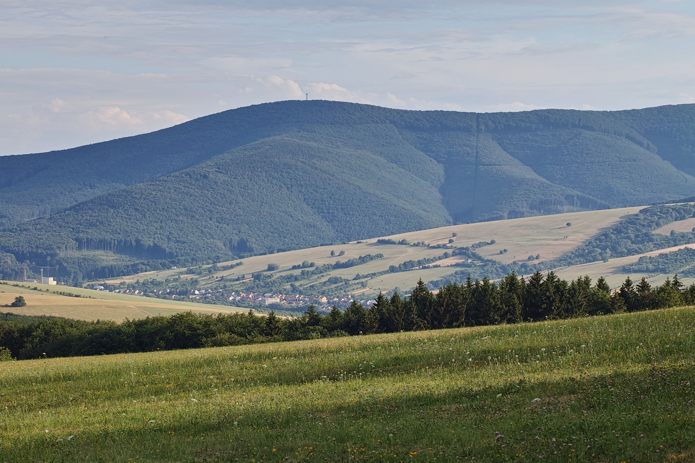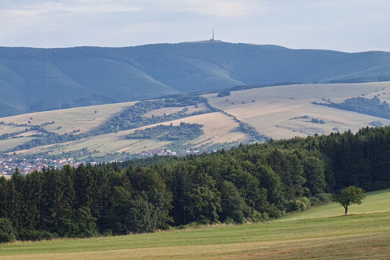 Stále minulá neděle z Chlumu. V pozadí je Kelčský Javorník, nejvyšší vrchol Hostýnských vrchů (865 m) s novou dřevěnou rozhlednou na vrcholu.