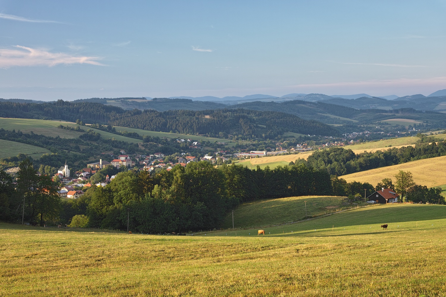Dovolím si také vložit několik cvaků. Když jsem se minulý týden vracel ze služební cesty ze Slovenska, zastavil jsem se na chvíli ve Strání a hledal dobré místo pro večerní focení osvětlených vesniček v údolí a samot na kopcích. Místo jsem našel. Vložené dokumentační fotky ale za moc nestojí. Byl velký opar a sluníčko vylezlo zpoza mraků jen na chvíli. Jarda