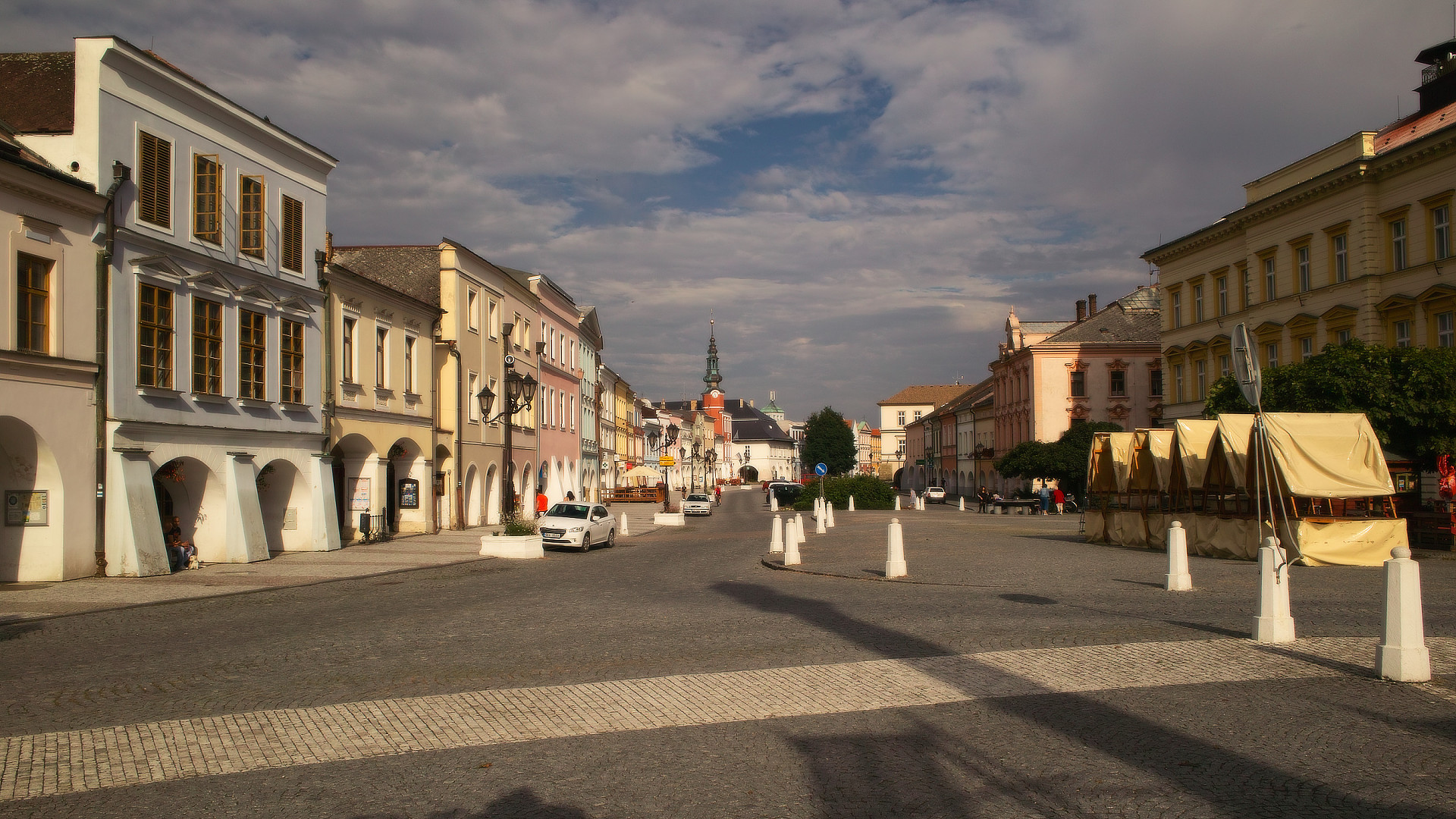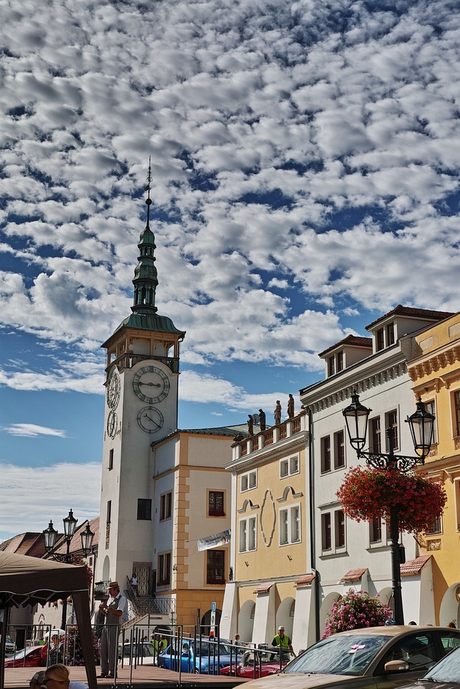 Ta radnice je perfektní, Jardo. Pokud Ti nešlo o ty mraky (které náhodou parádně vyšly), stačilo foťák tolik nenaklánět nahoru, kde máš teď spoustu místa (na ty mraky super). Radnice by potom měla menší náklon, který by šel snadněji srovnat. Na kandelábry neber takový zřetel, ty bývají mnohem častěji nakřivo, než budovy.