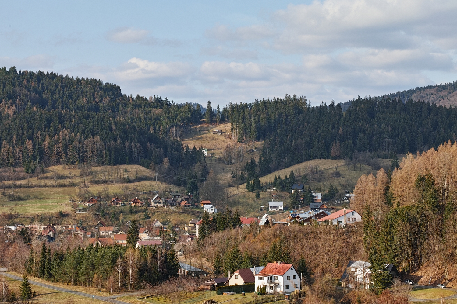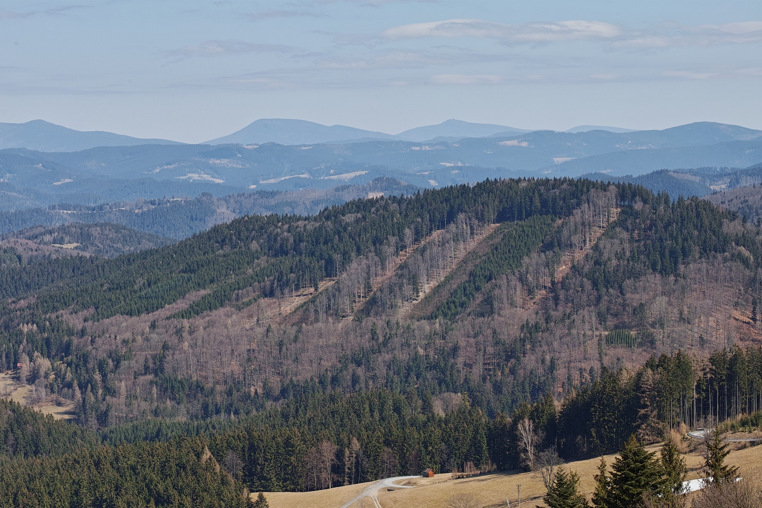 K možnosti panoramatu z terasy Kohútky jsem přistoupil skepticky a tudíž ledabyle. Padesátka byla příliš hraniční ohnisko a na výšku fotím velmi nerad. A navíc z ruky... Tady je výsledek z pěti fotek zmenšený na čtvrtinu původní délky.