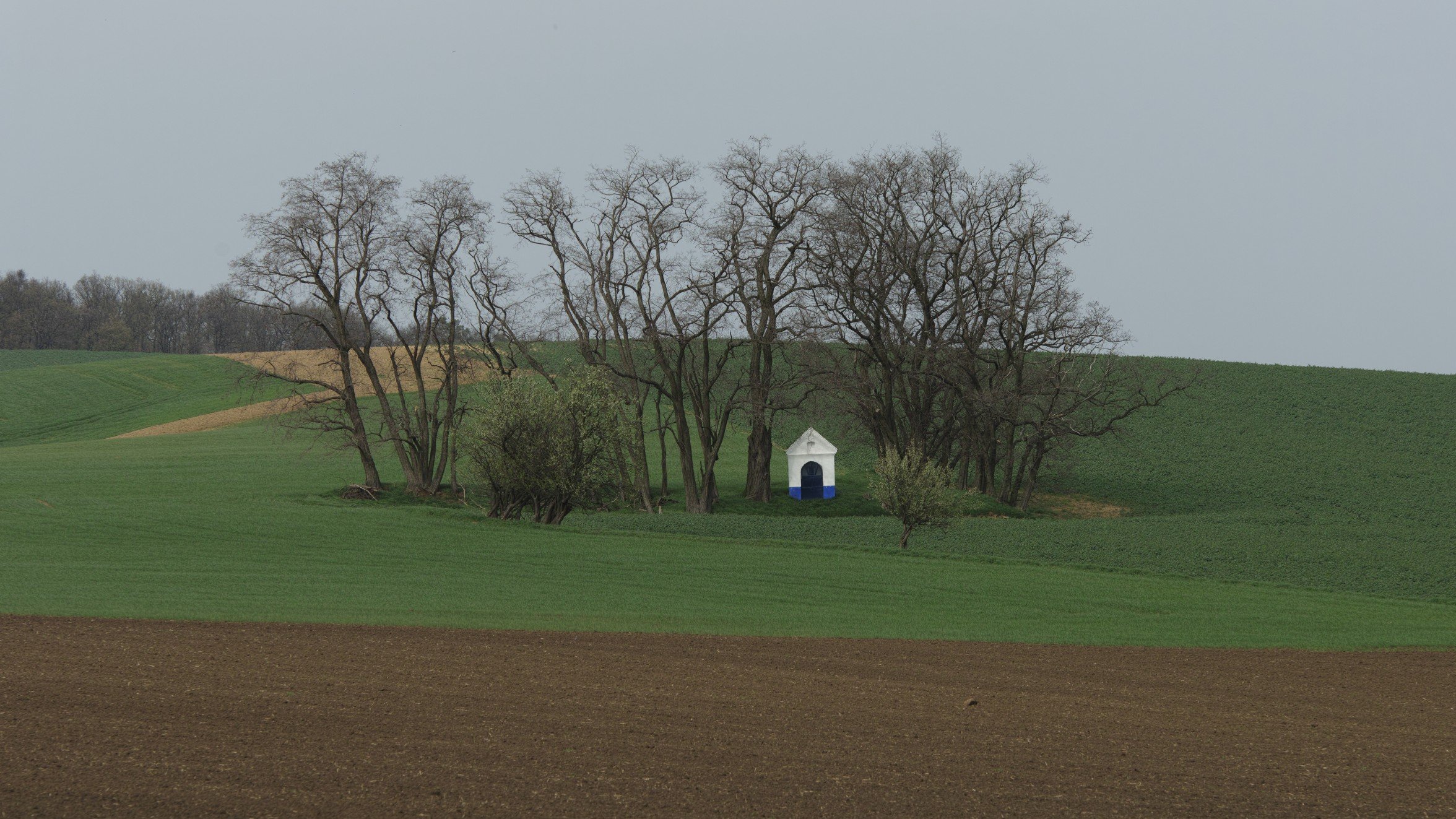Tak tady taky vložím několik fotek té slavné kapličky v poli pro studijní účely místních specialistů. :D Foceno z ruky, minimální úpravy v SPP. Obloha s vysokou oblačností, kterou se chvílemi snažilo probojovat slunce. Ta rozdílná barevnost půdy na prvním a třetím obrázku odpovídá skutečnosti. Jarda