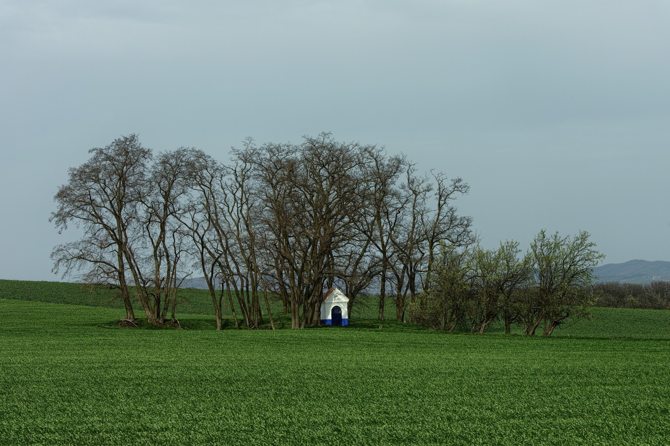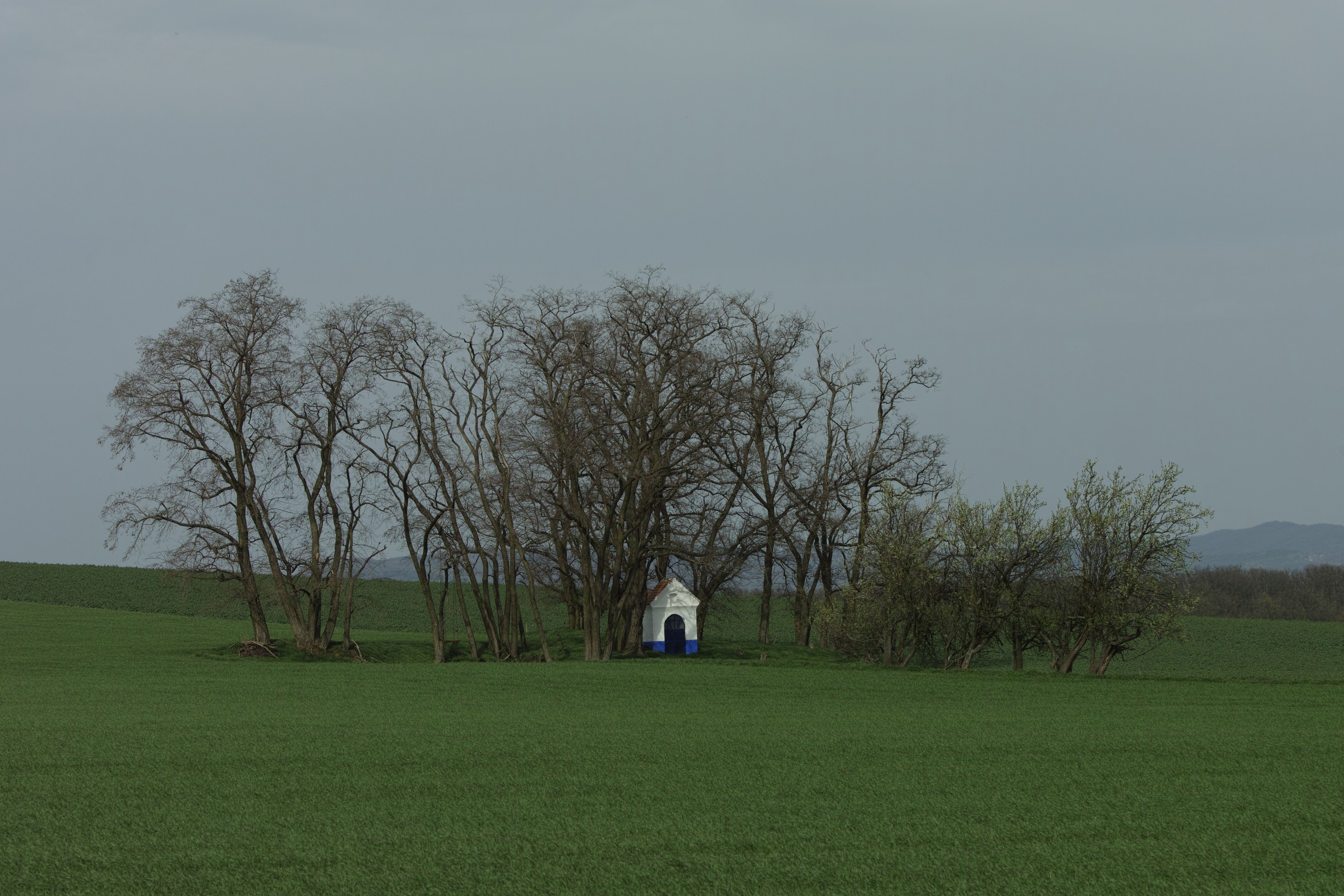 dávám jednu dnešní kapličku. Sluníčko si hrálo na skovávanou a žádné slušné mraky.