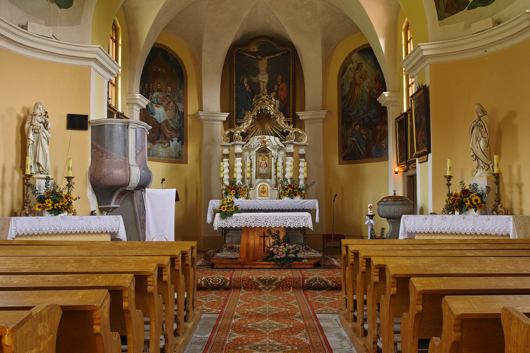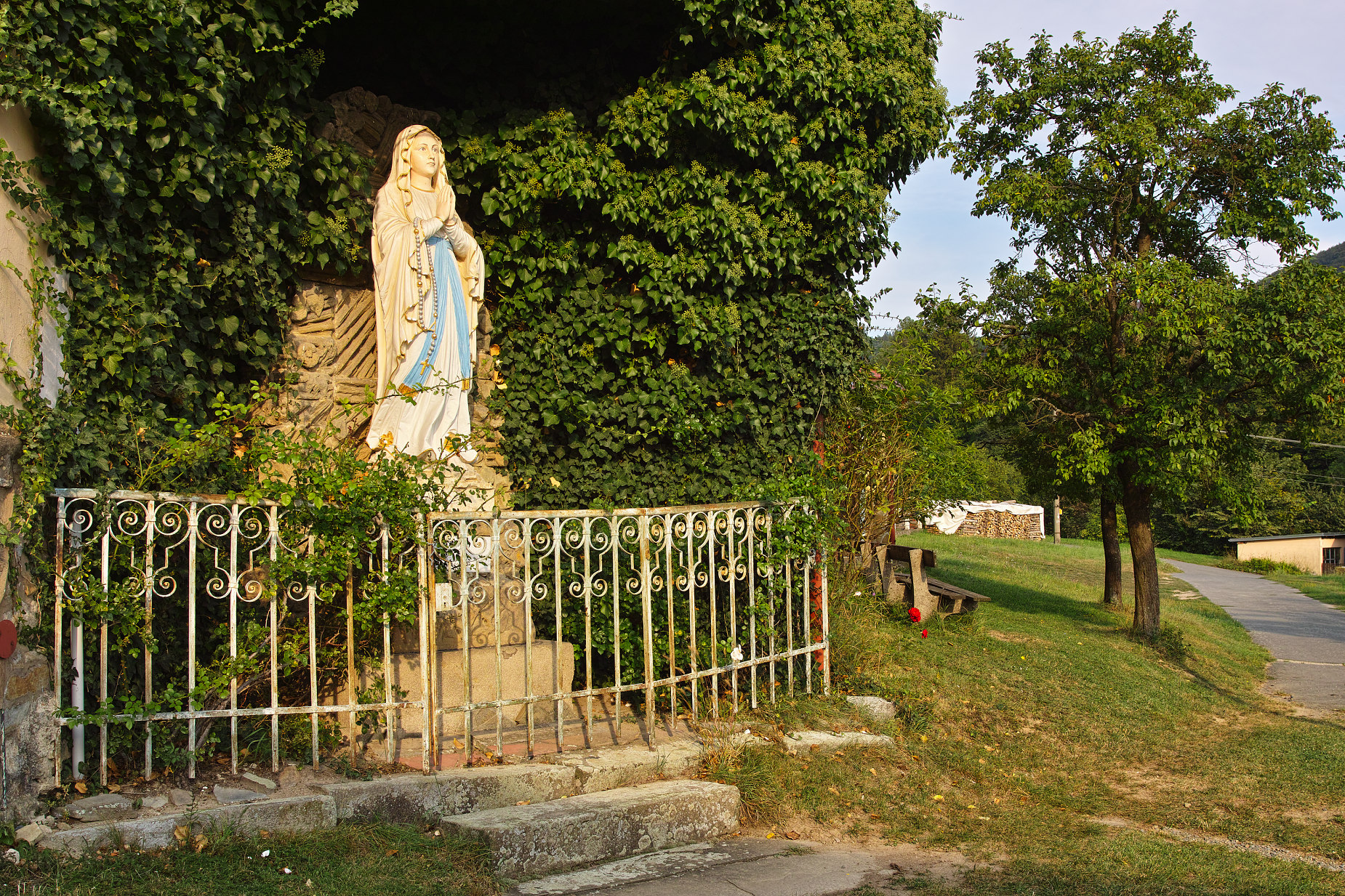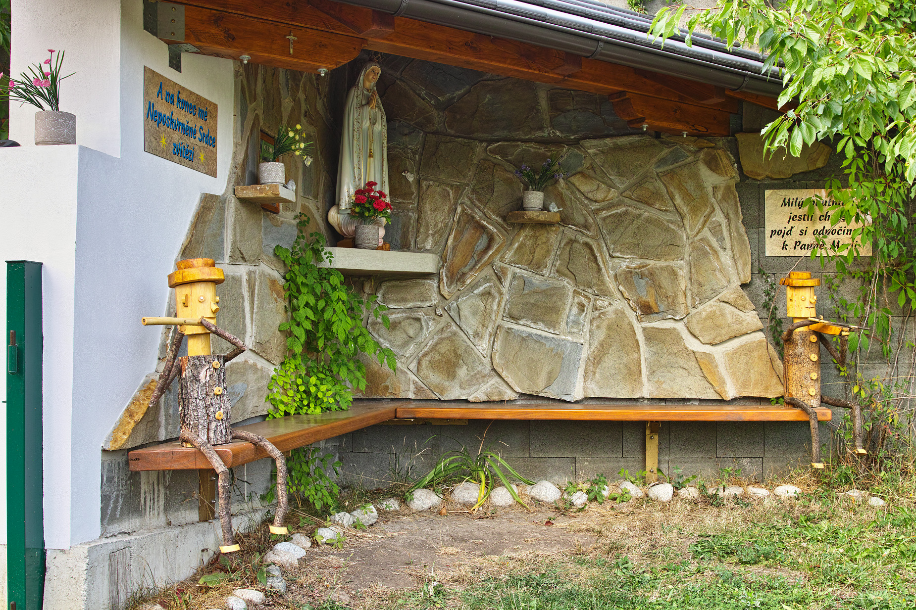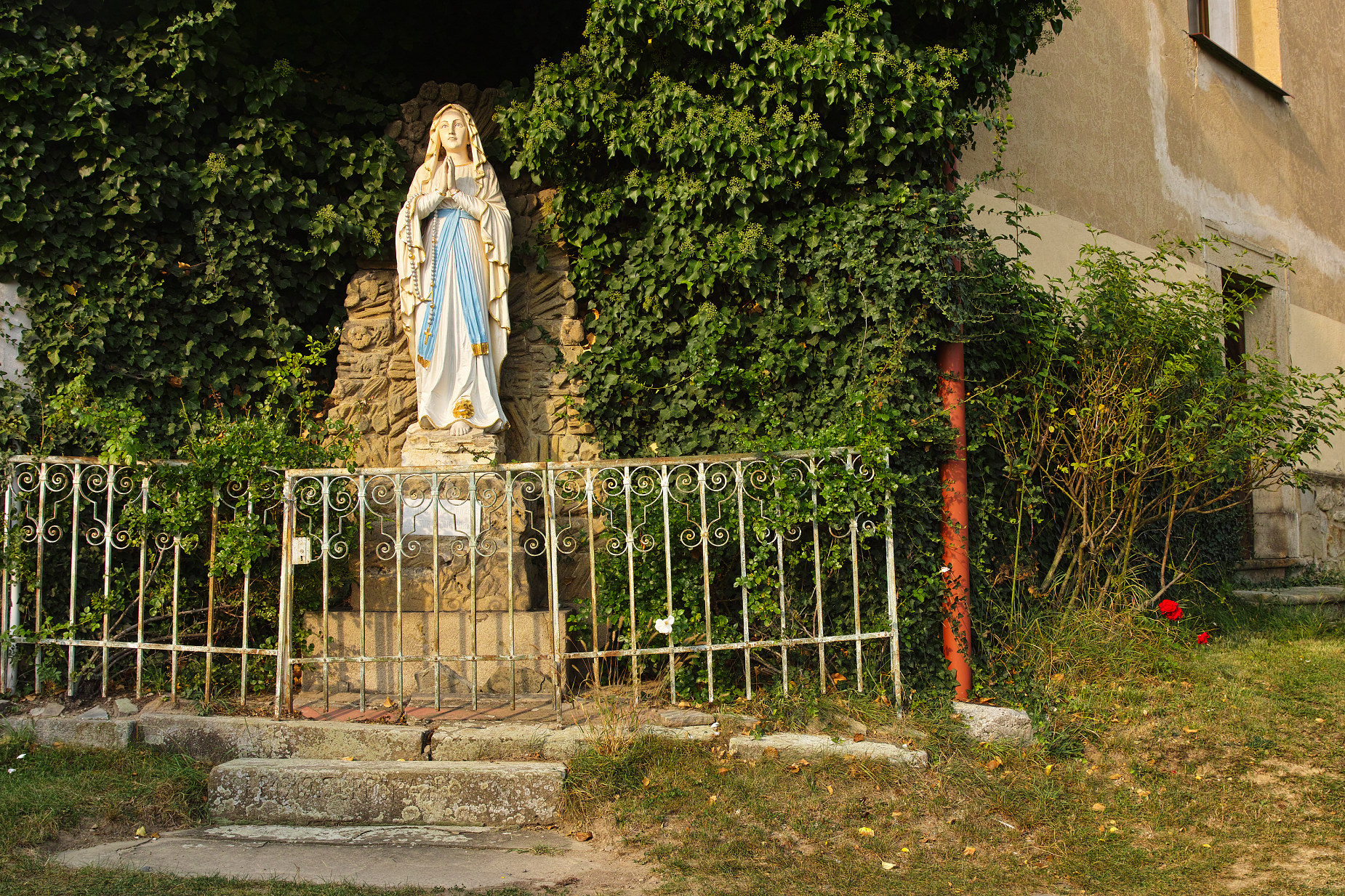 Jarouši, kostelík zvenku i zevnitř technicky a barevně parádmí. (n) (n) (n) Socha venku na mne působí mírně neostrým dojmem. Je to asi tím, že nemá ve tváři žádné ostré hrany nebo přechody. Jarda