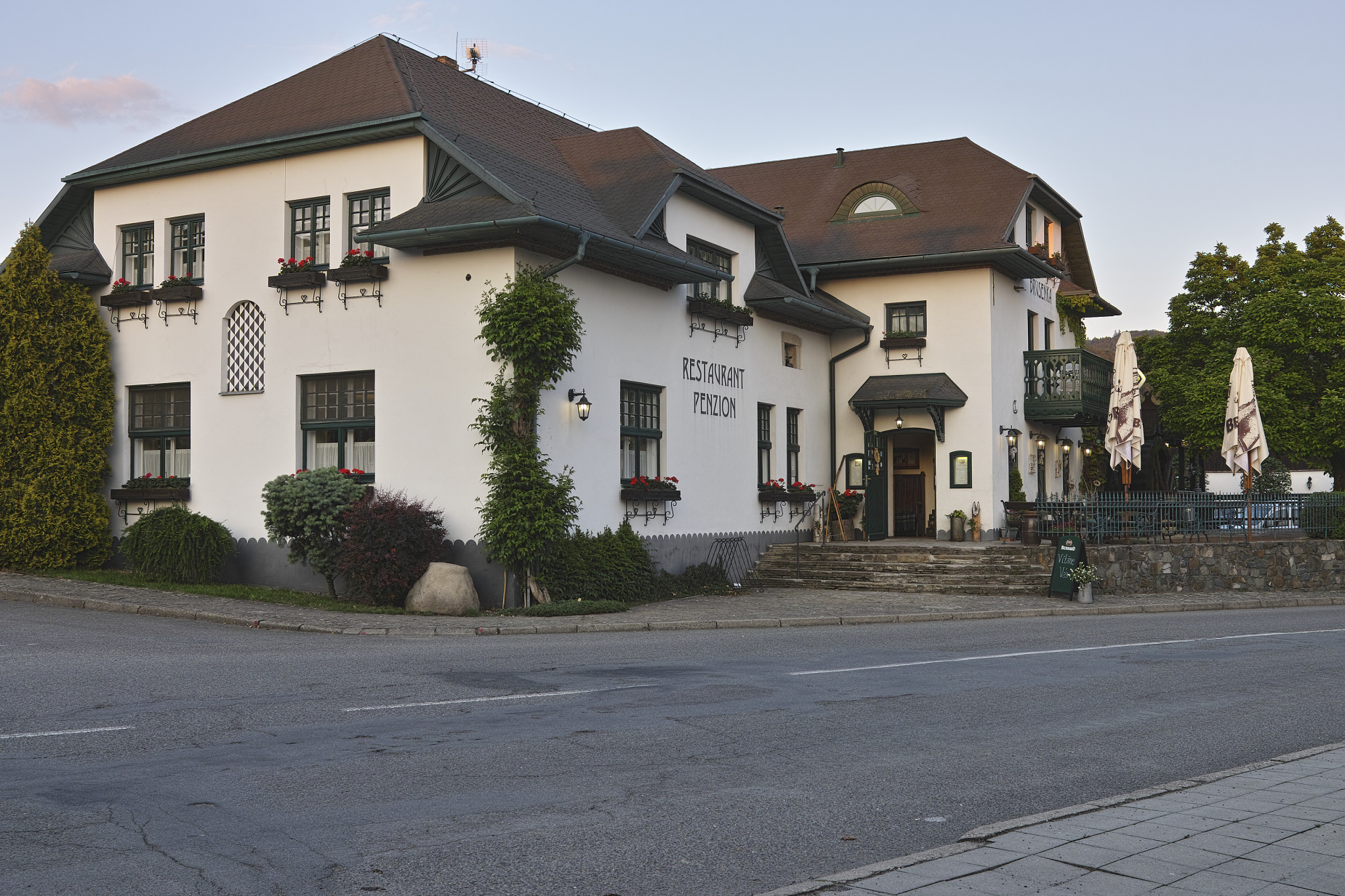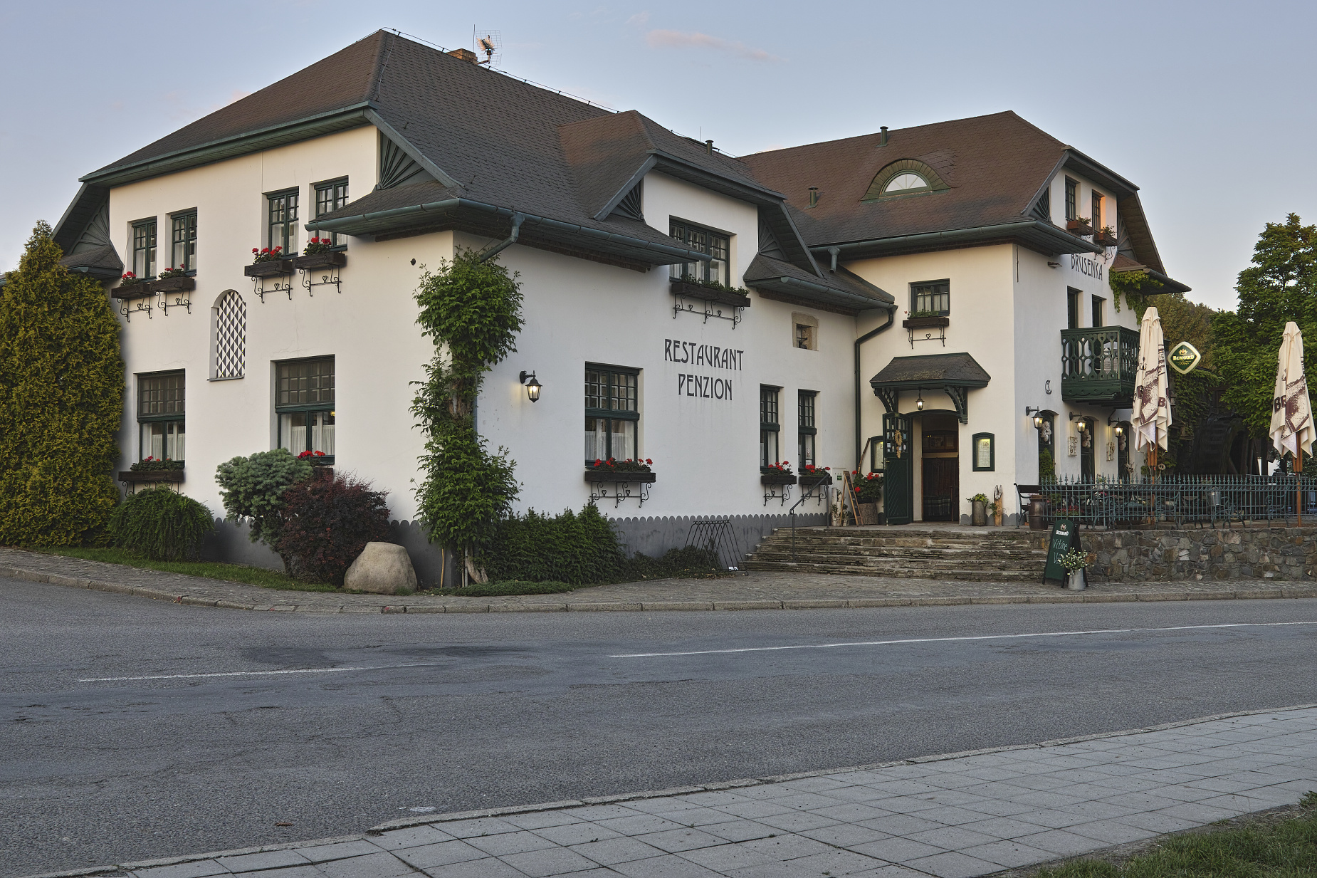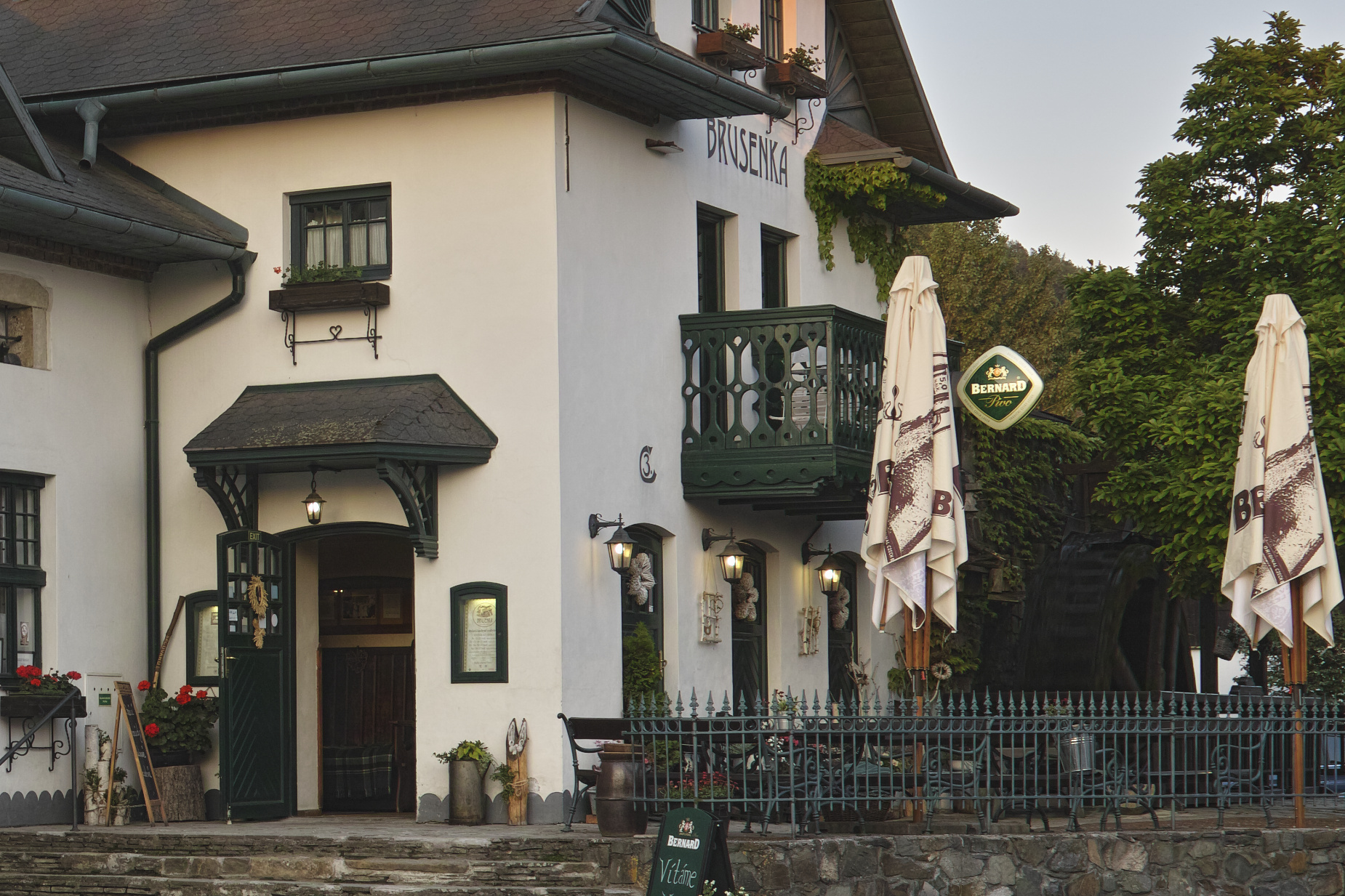 Restaurace a penzion Brusenka v Brusném má i funkční vodní kolo (čtvrtá fotka, výřez ze třetí).