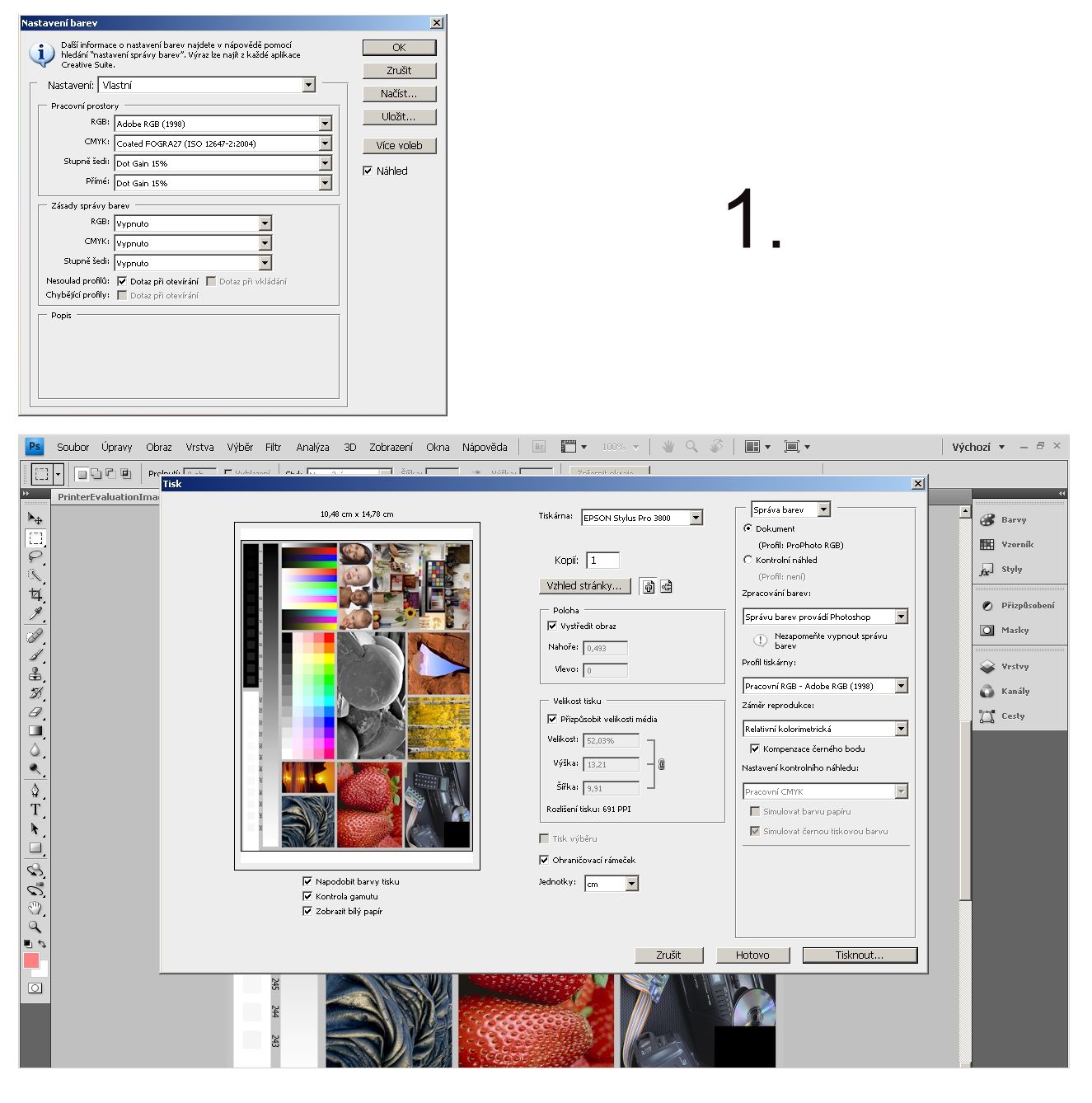 John píše:Máte pravdu, bude to patrně souhra několika chyb. Různé profily jsem nastavil kvůli viditelné změně. Používám vždy jen jeden, případně dva icc podle papírů. V driveru tiskárny se ve win po volbě ve Photoshopu "Volbu provádí Photoshop", automaticky nastaví Off (no color adjustment).