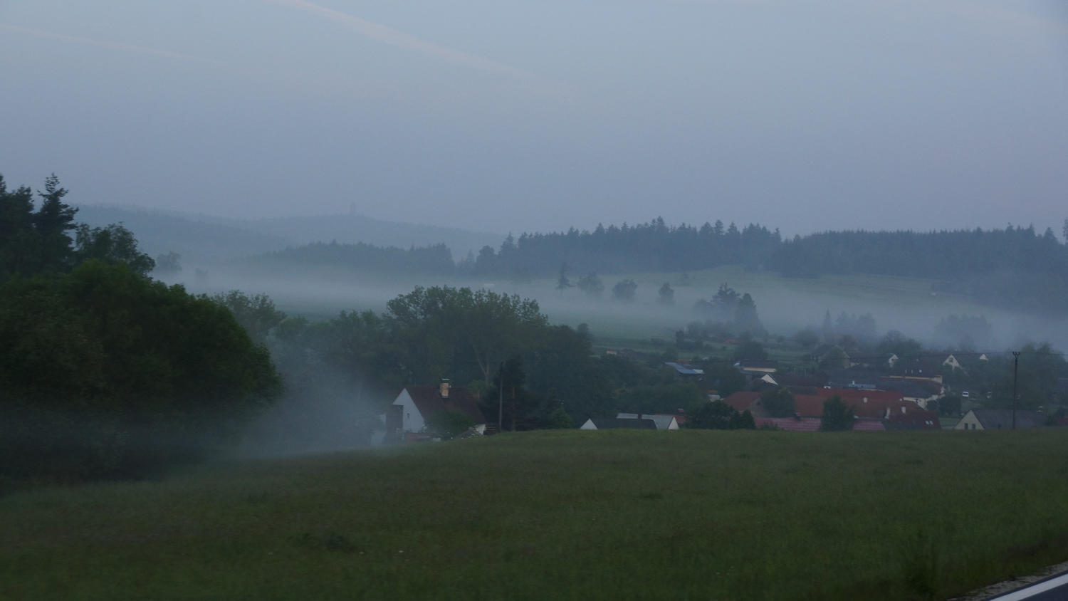 Z cest z auta: Silnice do nebe ;-) (Klatovsko) a časně ráno (Dačicko):