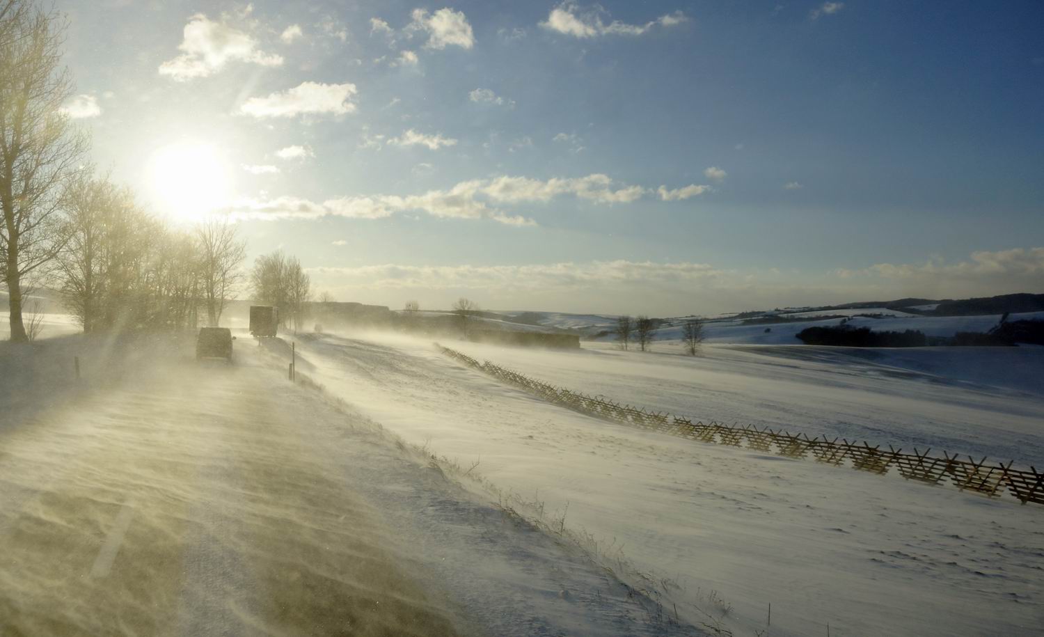 Tak když nikdo z auta, krom kritiky... - morální i technické kvality, aniž by to dotyční sami někdy vyzkoušeli...(zejména za úsvitu nebo večerního šera navíc v zimním období a přes sklo!), tak dám zase ńáký z jedoucího auta 8-) - dvě aktuální ode mě z jihu JM a dvě od spolujezdkyně ;) (neb jsem byl zrovna za volantem!) ze severního Bavorska: