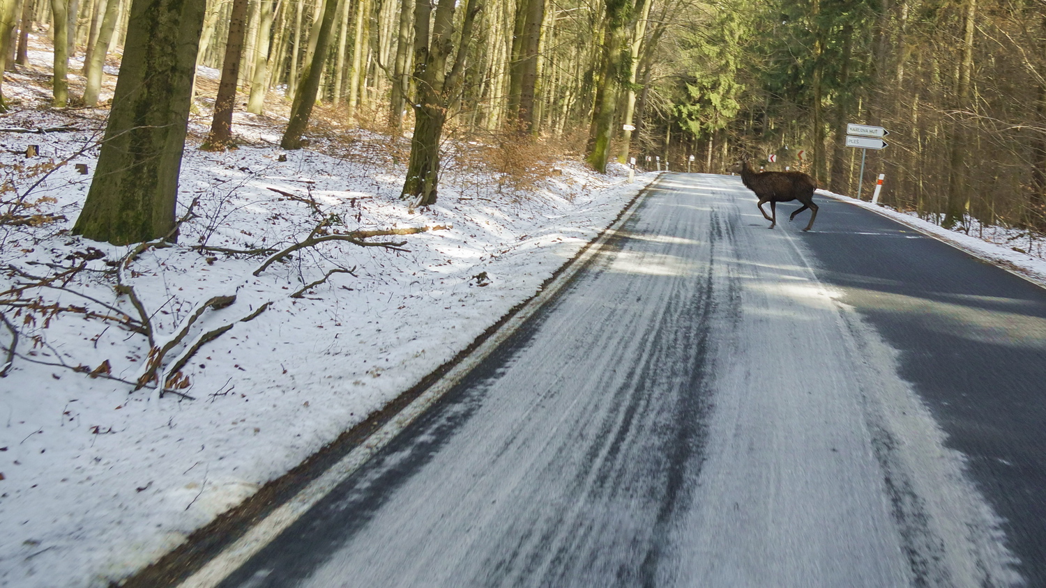 (je to mázlý pohybem - v šeru lesa bylo ISO200 málo :( i upatlaným čelním sklem auta...)