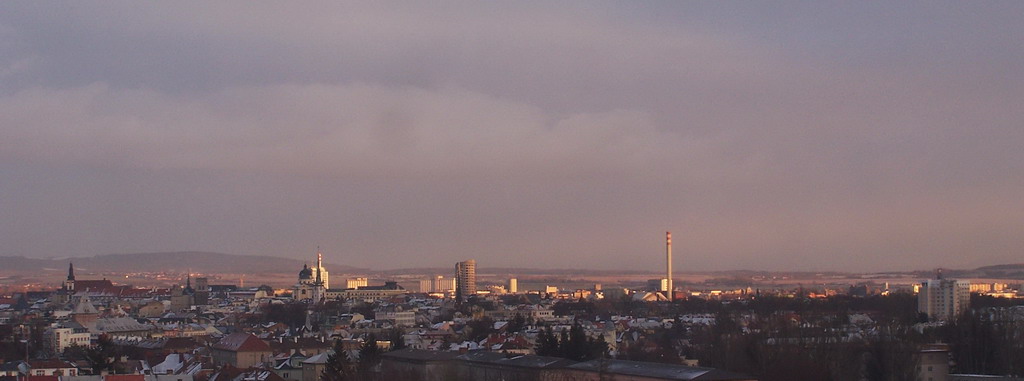 Dneska jsem totálně prošvihnul " zlatou hodinu" a tak jsem na poslední chvili stihnul jenom prár snímků přes žpinavé sklo v 7 podlaží (okna nejdou otevřít) a na cestu do sousedního paneláku na vyhlídku do 8 podlaží už nebyl čas , ta nic moc .penzista