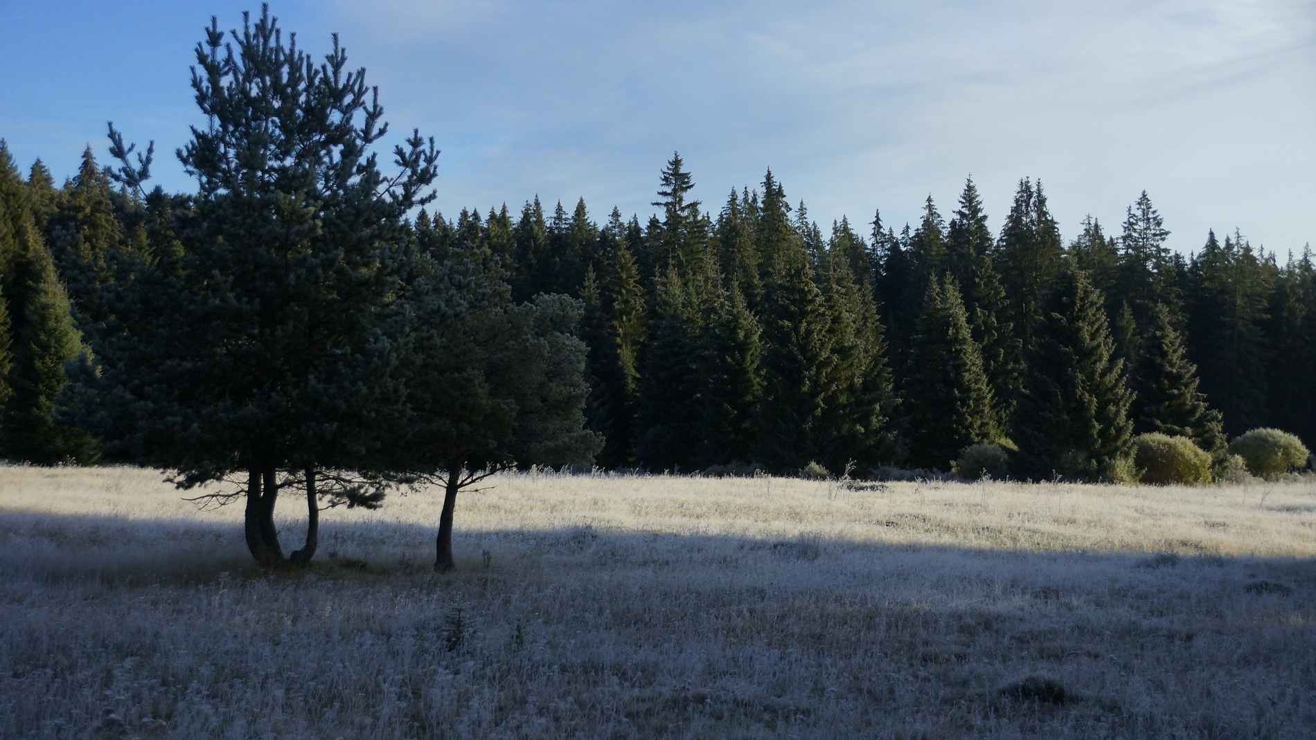 Edo, ten modry stych ve stinech neni proto, ze by bylo mrazivo a rano. To je nesmysl. Rano je denni svetlo dokonce teplejsi, v zime i dele trvajici, protoze slunce je svou zimni polohou celkove nize nez v lete. ;)