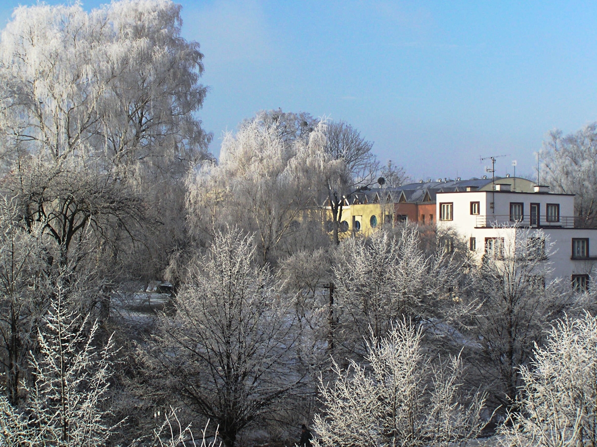 Také se mi jednou - v roce 2005 - podařilo probudit do ojíněného rána. Jsou to fotky jenom z balkonu,