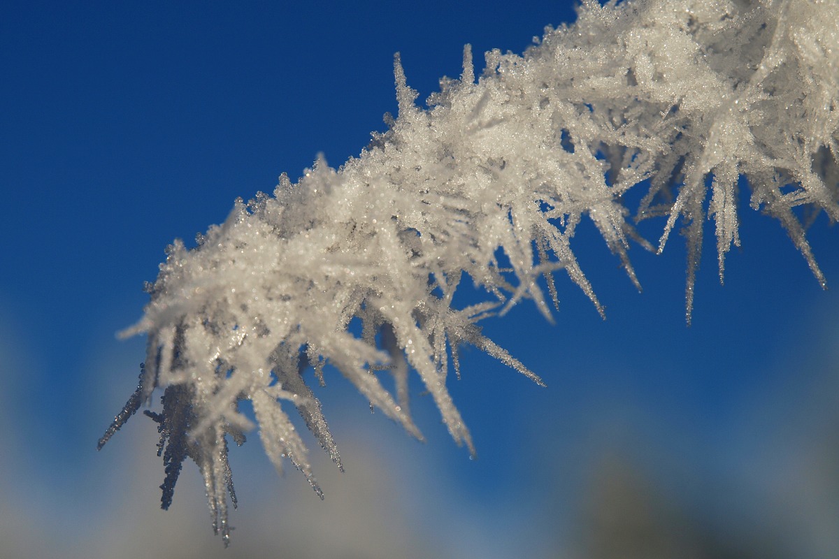 Zářivé jíní v ranním slunci