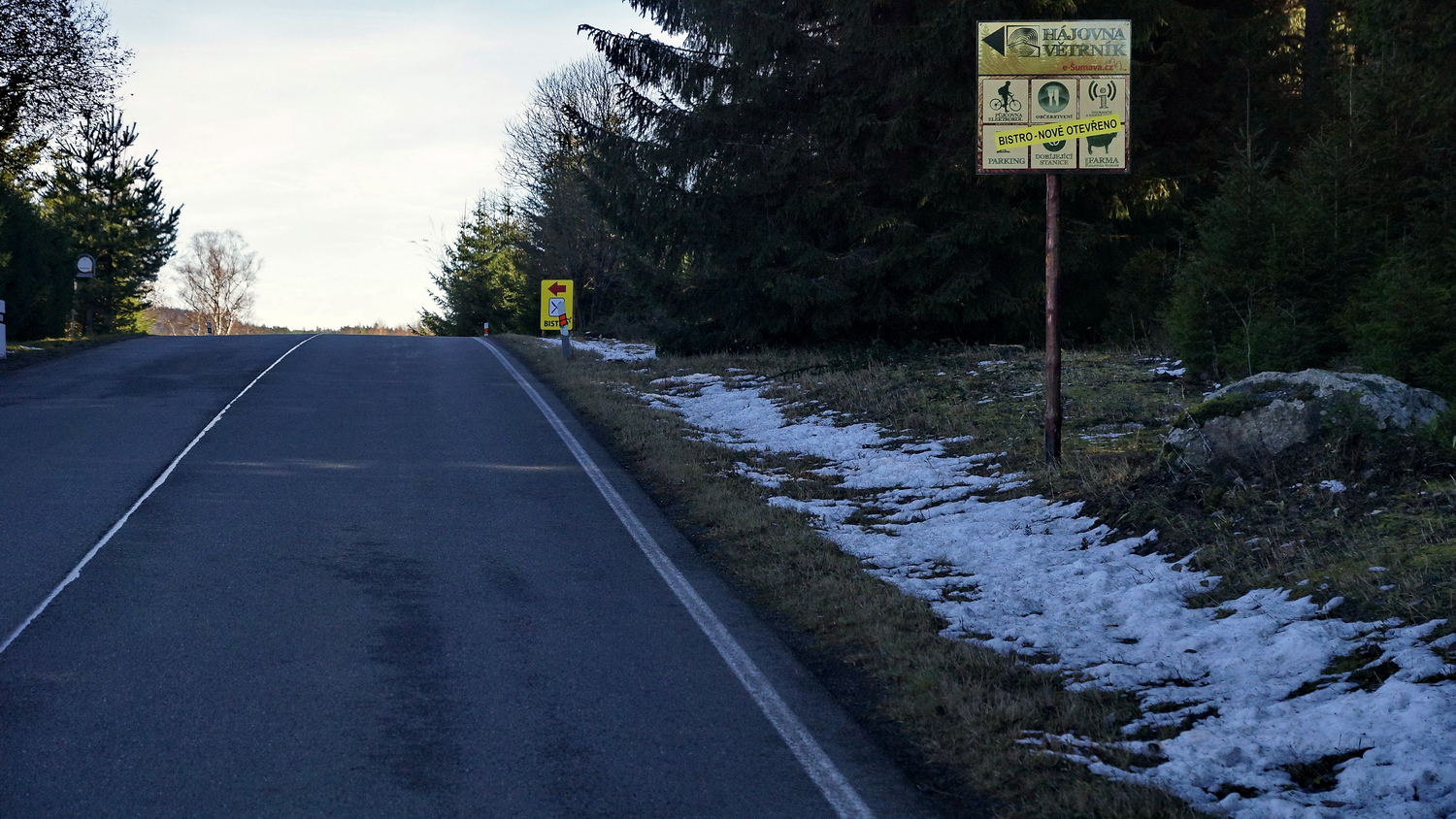 Mnozi ridici casto nehledi (nebo hledi taky na krajinku...) a ac davam blinkr hooodne dopredu, nereaguji na nej a tak odbocit na polni cestu radeji ani neriskujeme
