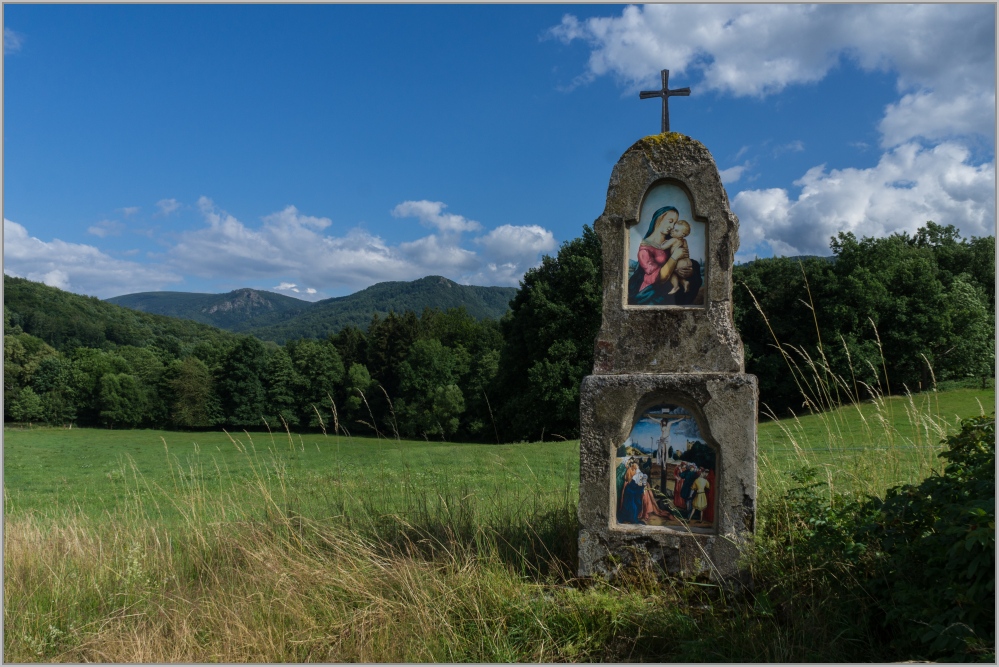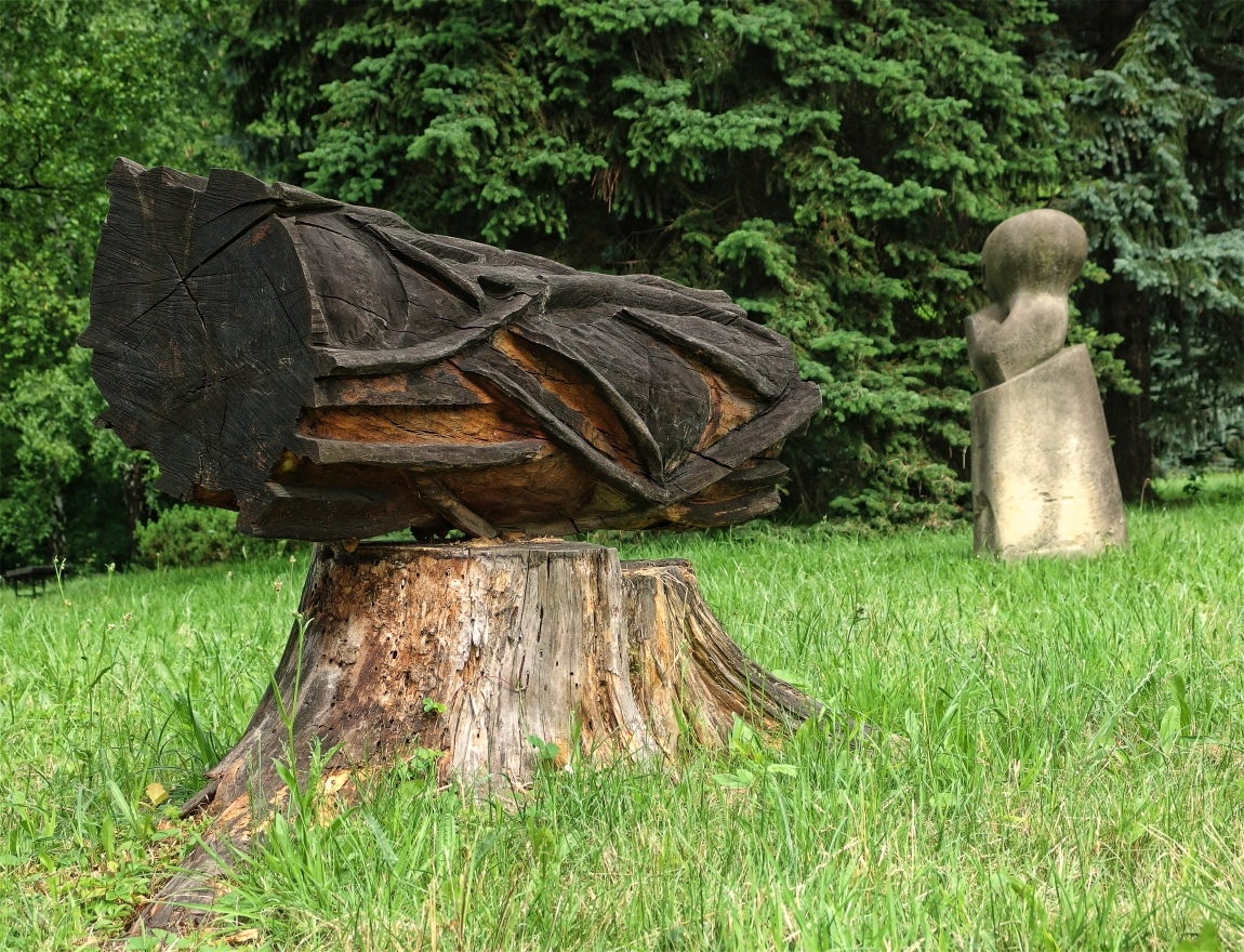 Fotí vám to pěkně, pánové . Já tu mám detail krajiny, ale stvořený lidskou rukou. Jednou za čas se tu konaly plenéry sochařů z ČR, Polska i Slovenska, kteří přímo v nemocničním parku tvořili svá díla. Ta pak v tom parku zůstala natrvalo.